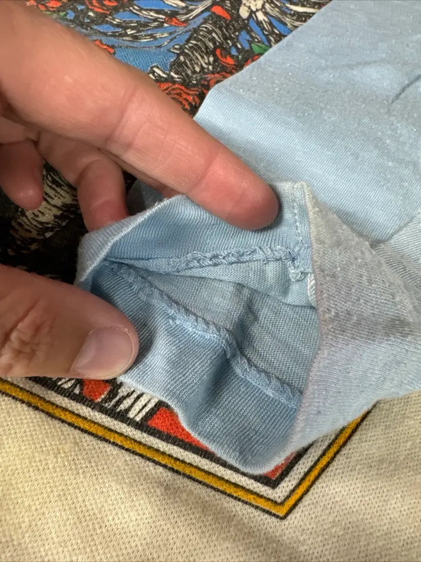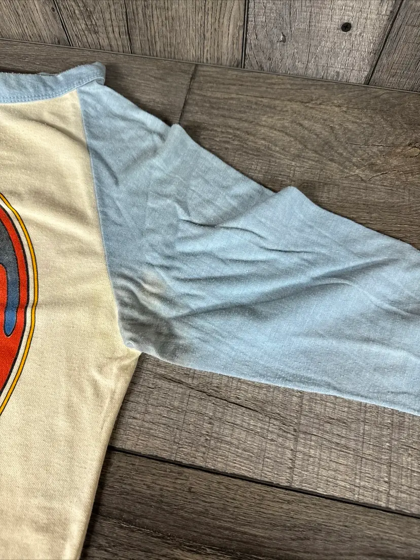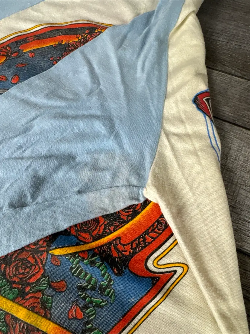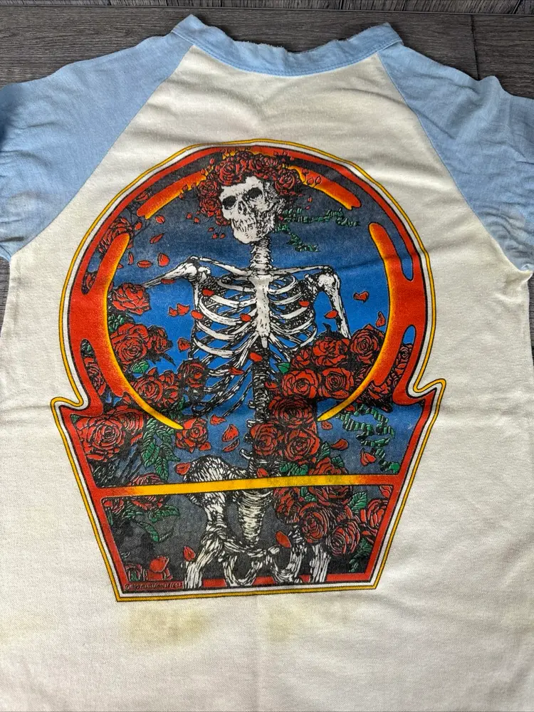 This vintage t-shirt from the 80s is a rare gem for any Grateful Dead fan. Featuring a unique graphic design anyone would enjoy! -What you see is what you receive, please see photos. -Item is SOLD AS IS. -Pit to pit 18” -From top to bottom 30” -Does have some discolored areas on front and back. See pictures! -Free shipping.