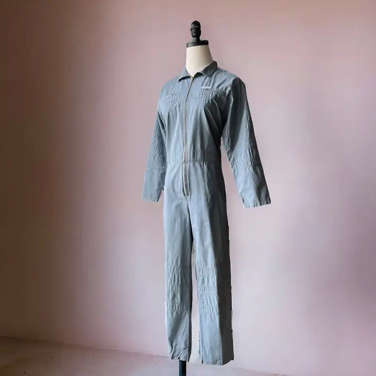 Coolest 1980s unisex boiler suit in slate gray by St. Germain Paris. Classic workwear zipper closure in the front, collared neckline, two zippered pockets on each side of the chest, two pockets at the hips. Long sleeves, ankle length with industrial style seam details at the elbows and knees. Elastic in the waist offers a bit of variability in size, but please keep in mind your torso length with jumpsuits - this piece in particular does not accommodate long torsos, or generally, people over 5'9". No tags, lightweight material, please refer to measurements below for accurate sizing. Great vintage condition! [measurements] Shoulder to waist: 16 in Chest: 36 in Rise: 12 in Waist: 32 in Hips: 38 in Sleeve: 23.5 in Rise: 12 in Inseam: 27 in !Please note! when buying vintage that these items are pre-loved! Isn’t that cute? Most vintage items show signs of wear, which is what makes them so special. I do my best to photograph, note anything visible such as stains, rips or holes in the item description. But please be aware that all vintage items will usually show a few signs of wear or slight fading due to age. I hope to find these unique items their forever homes, so if you have any questions about an item or need guidance with sizing, please contact me! I’d love to help! SHIPPING
