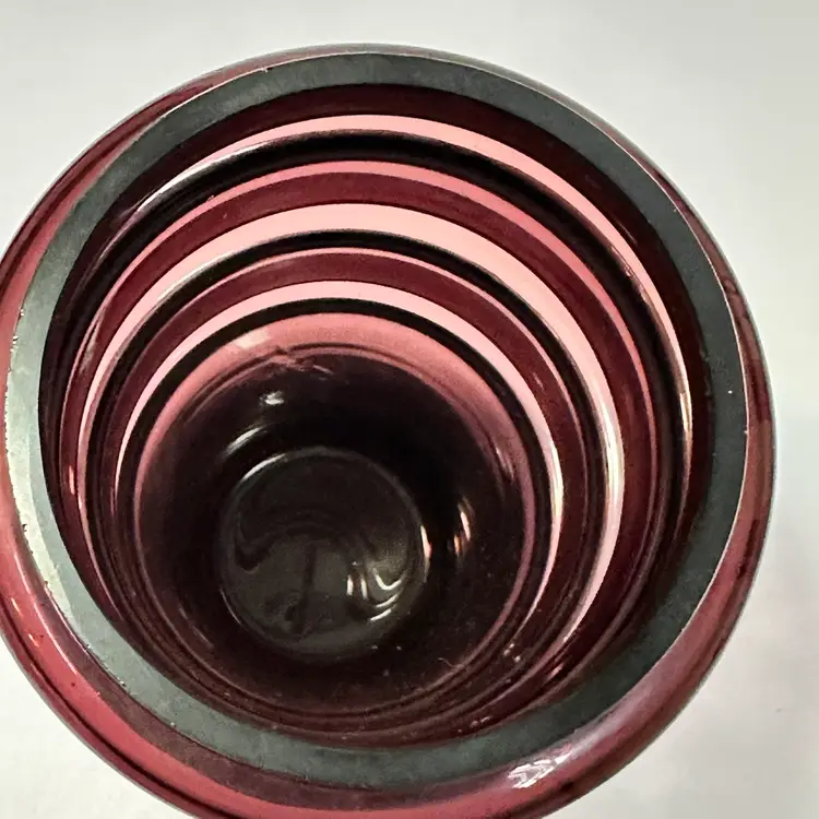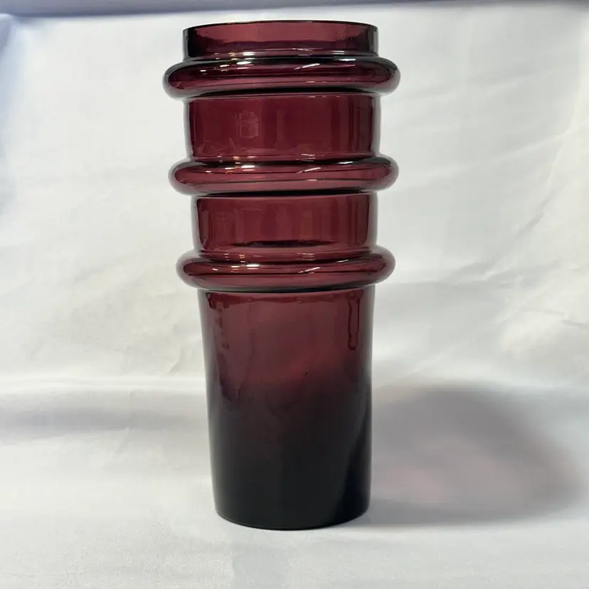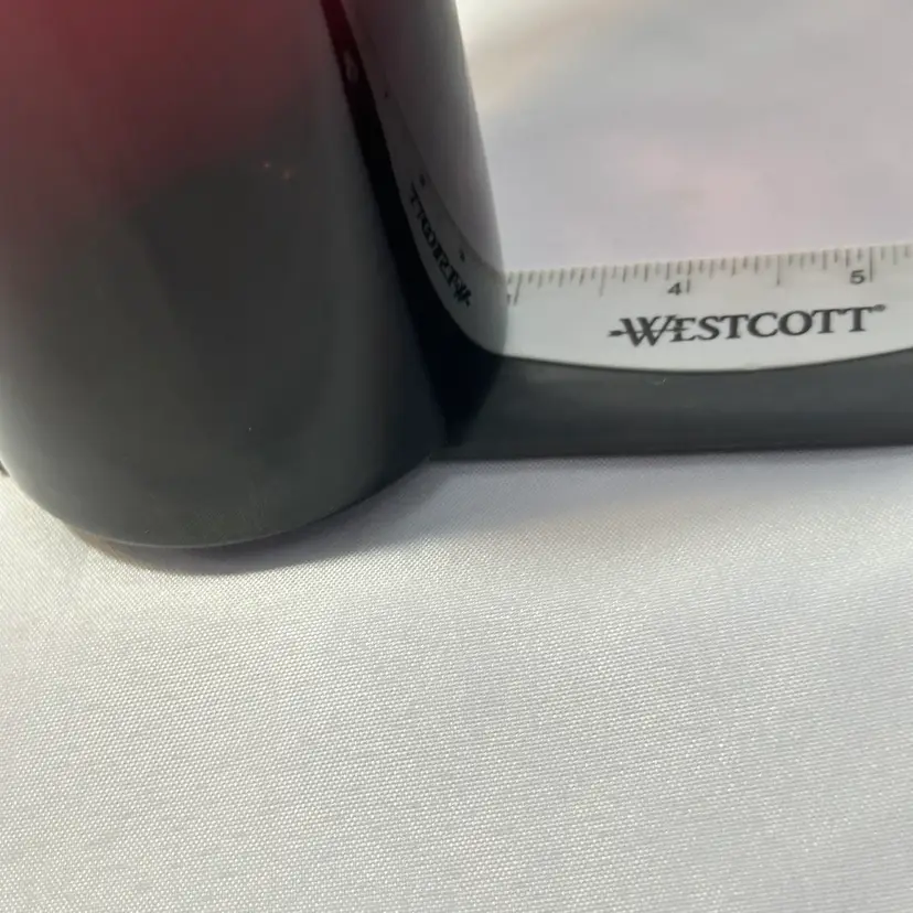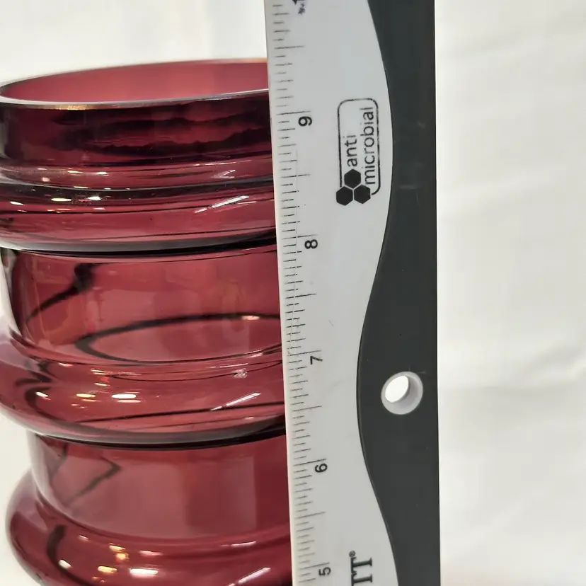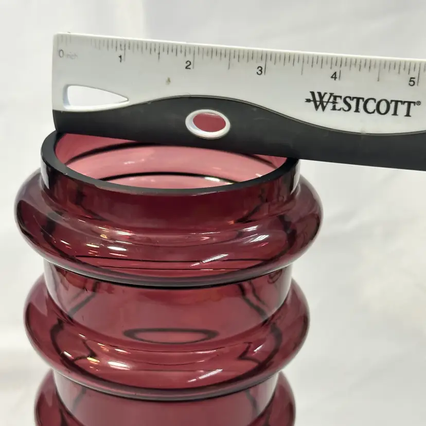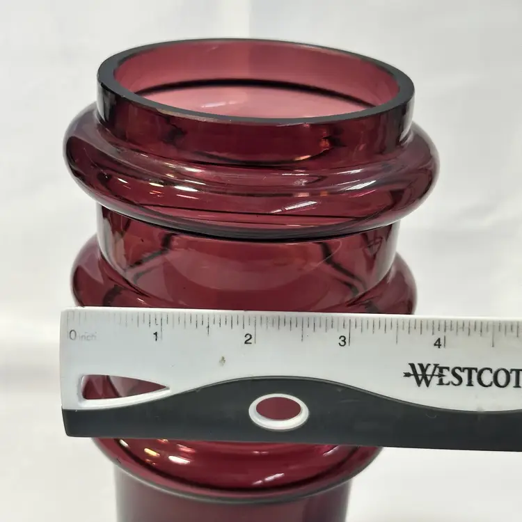 9x4x4, 1.12lbs, no chips or cracks, silky smooth to the touch Tall and beautiful purple glass vase