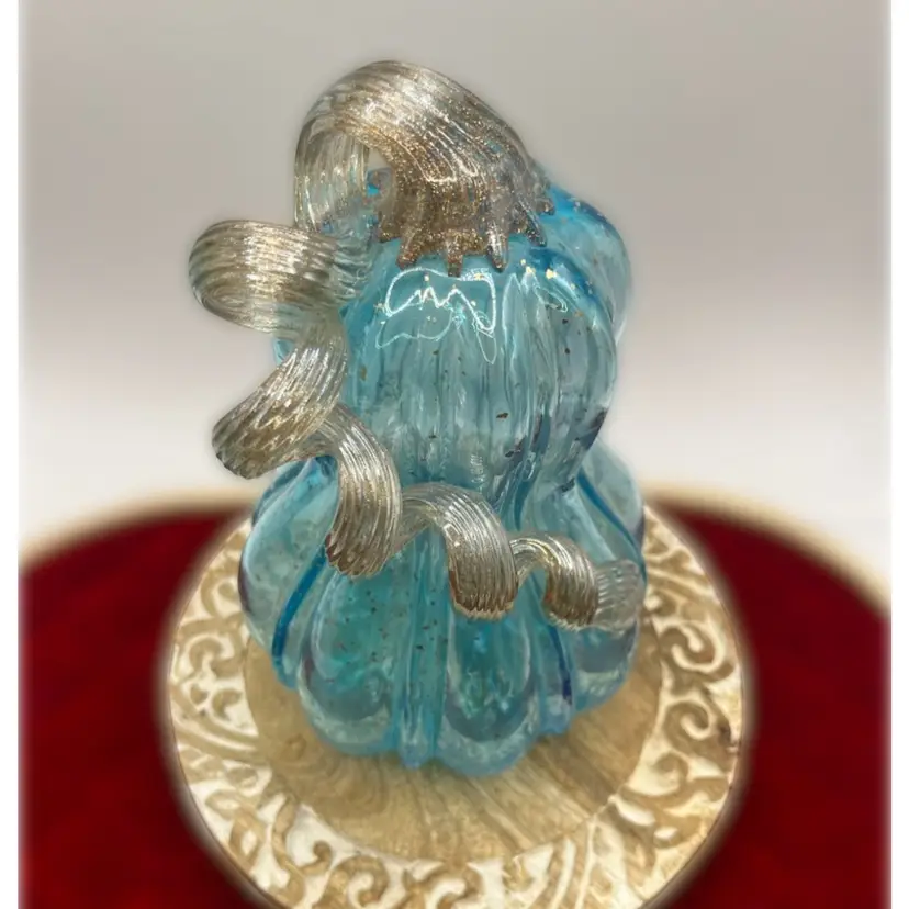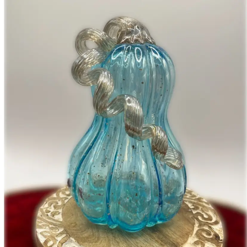 This beautiful light blue pumpkin is in excellent condition and ready to help you celebrate Fall! Stand approximately 8.25” tall and 5” wide. The glass pumpkin is 100% handmade.
