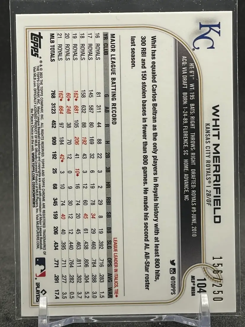 #87 - Whit Merrifield 2022 Topps Chrome Purple Logofractor #156/250