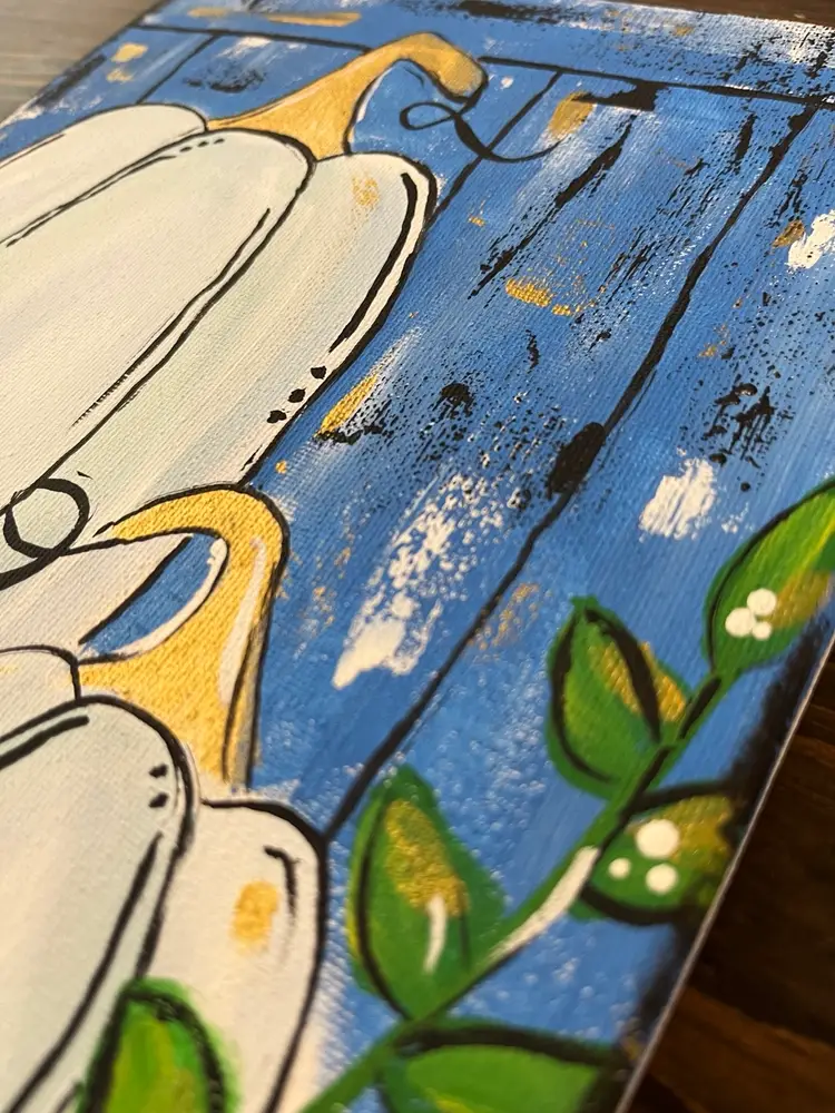 I teach paint parties and this is one of my sample paintings on canvas. It adds a touch of whimsy to any fall decor!! Frame not included but it was easily be popped into most 8x10 frames’