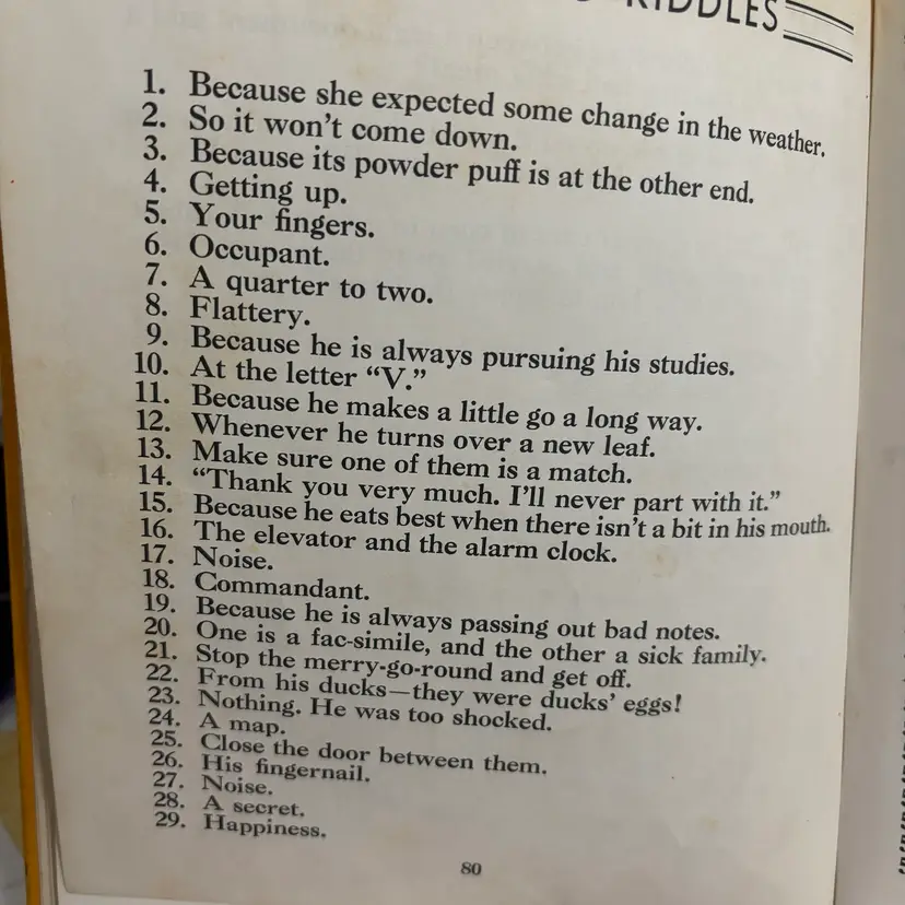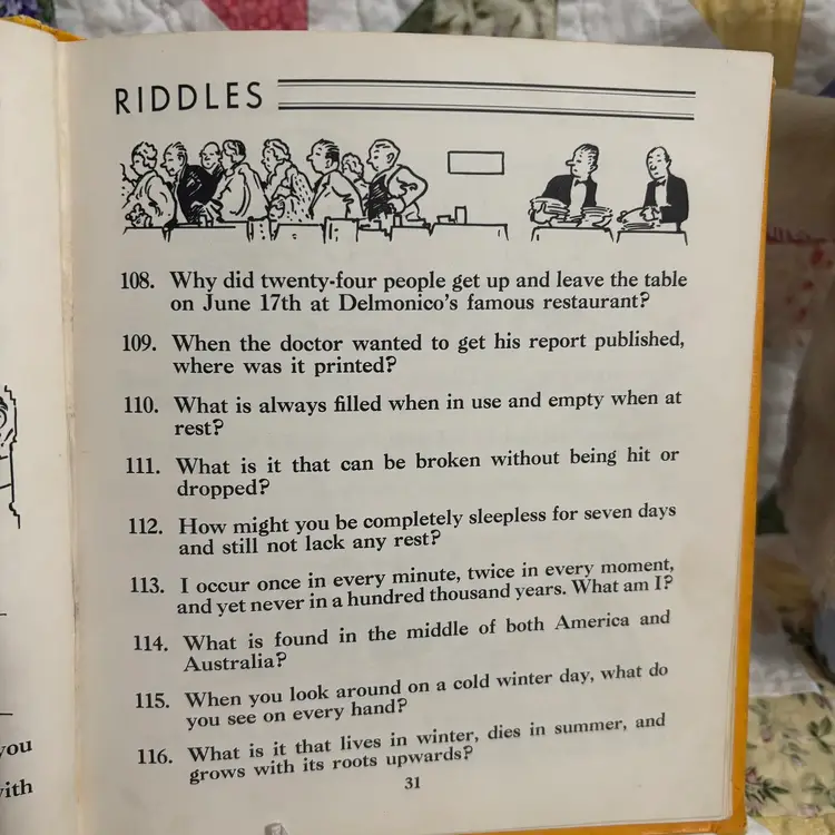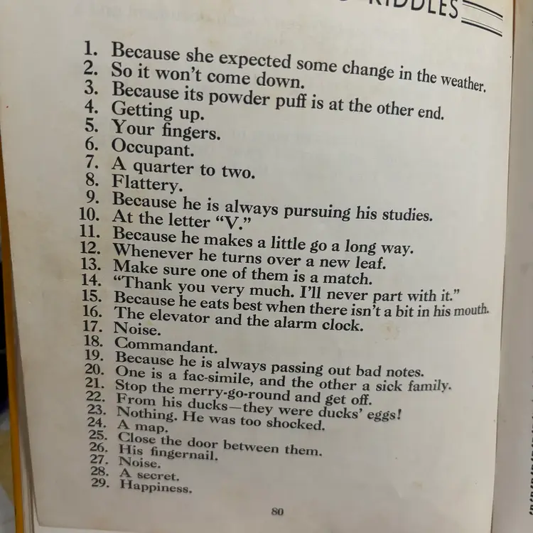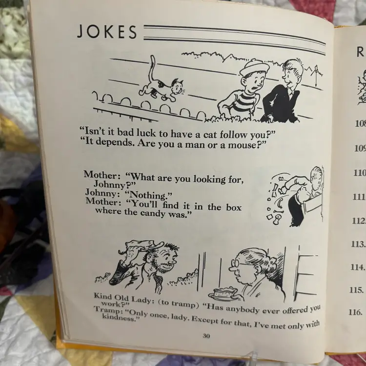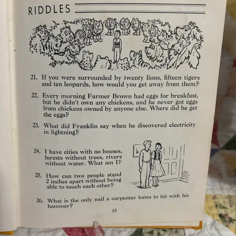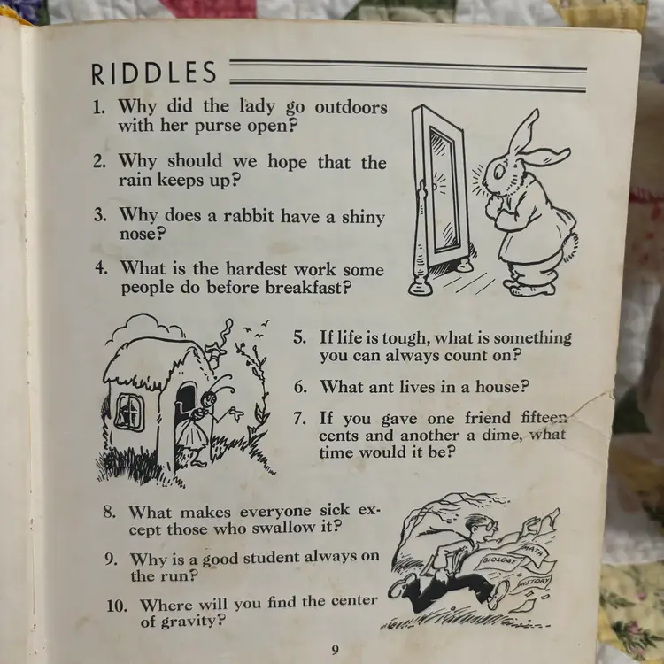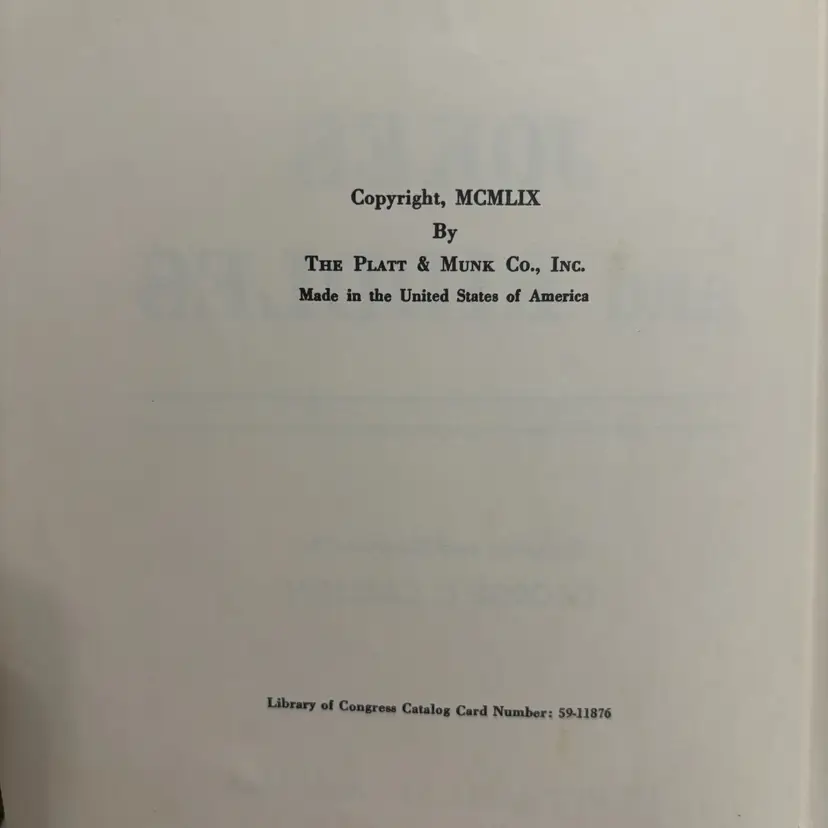From the library of Congress fill with jokes and riddles Ben Dad couldn’t come up with. Anderson to riddles in back. Someone wrote name. Good condition.