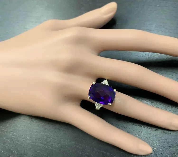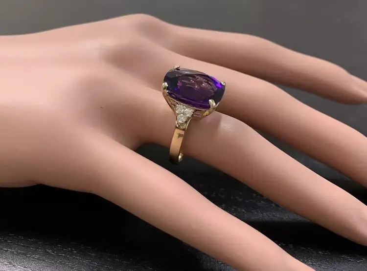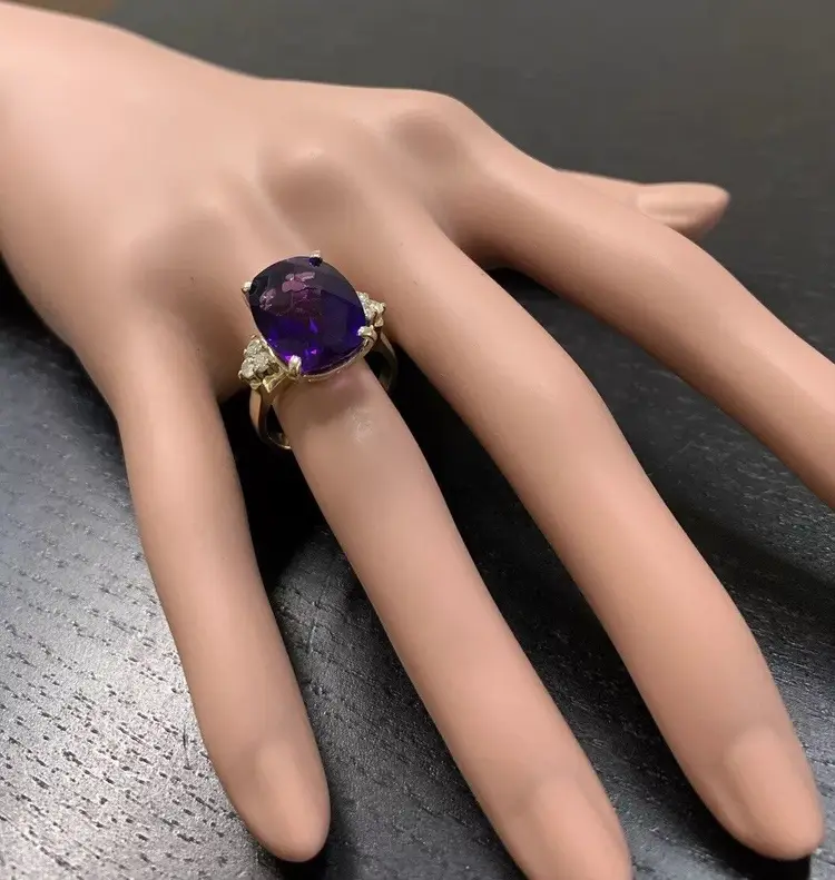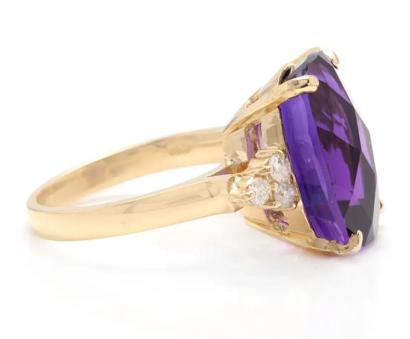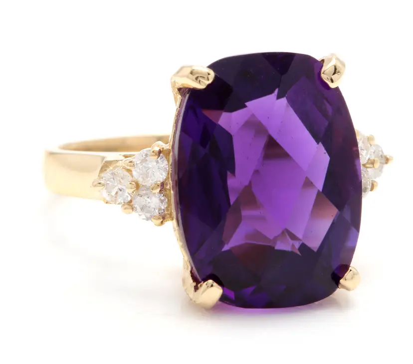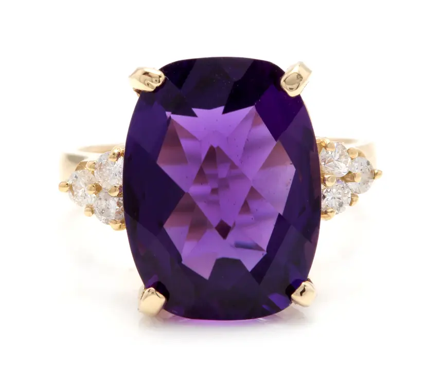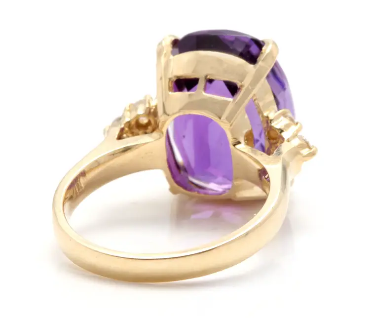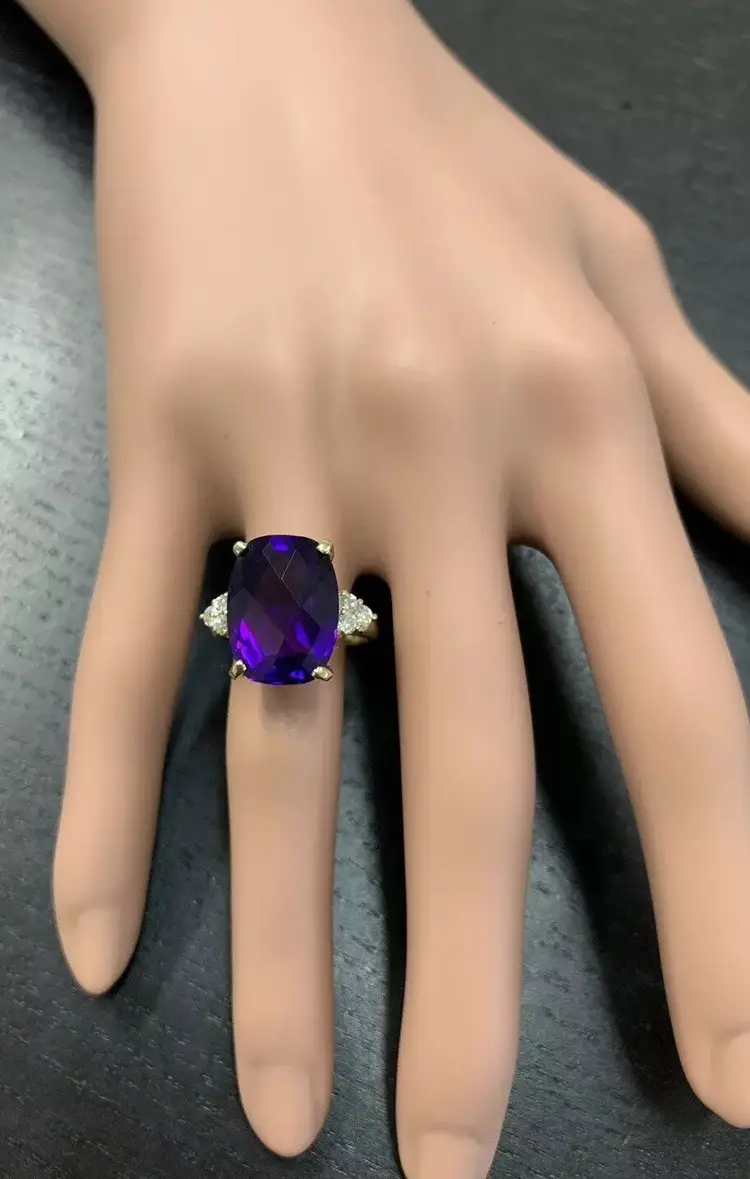 Main Stone Creation: Natural Sizable: Yes Main Stone Color: Violet Metal: Yellow Gold Modified Item: No Main Stone: Amethyst Ring Size: 6 Brand: Unbranded Main Stone Treatment: Not Enhanced Type: Ring Metal Purity: 14k Main Stone Shape: Cushion Total Carat Weight (TCW): 9.35 Country/Region of Manufacture: United States