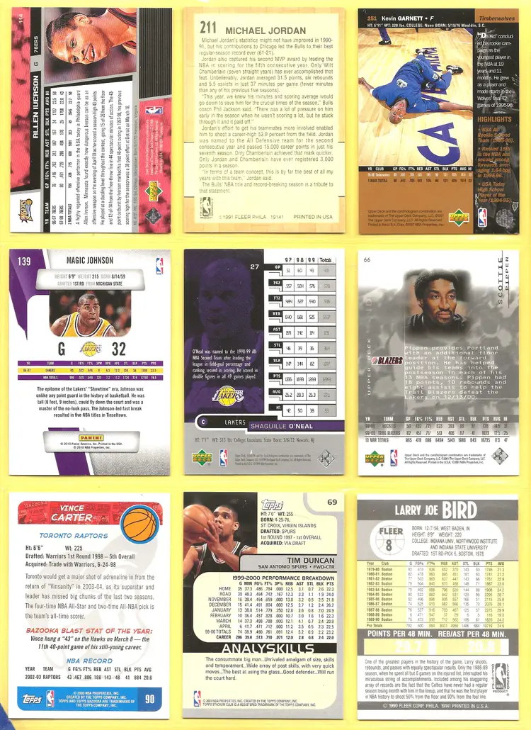 Players: Kevin Garnett, Michael Jordan, Allen Iverson, Scottie Pippen, Shaquille O'Neal, Magic Johnson, Larry Bird, Tim Duncan, Vince Carter