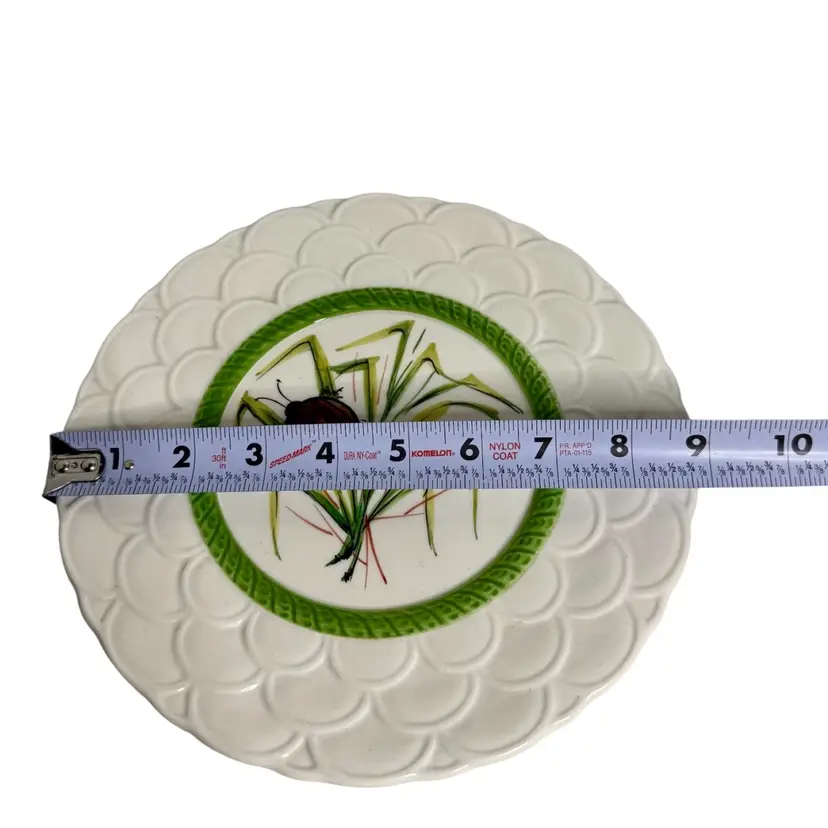9” Insect Plate With Scalloped Edge Ivory•Green•Brown Luncheon Plate/Shelf Decor.