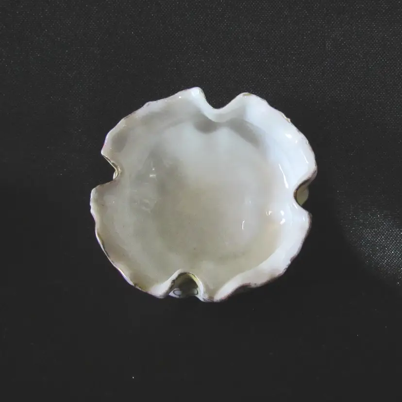 This porcelain salt is approx. 1 1'8" tall x 2 1/4" across. White porcelain with pink and yellow. Gold flowers.No marks. It is in excellent condition with no chips, cracks or breaks.