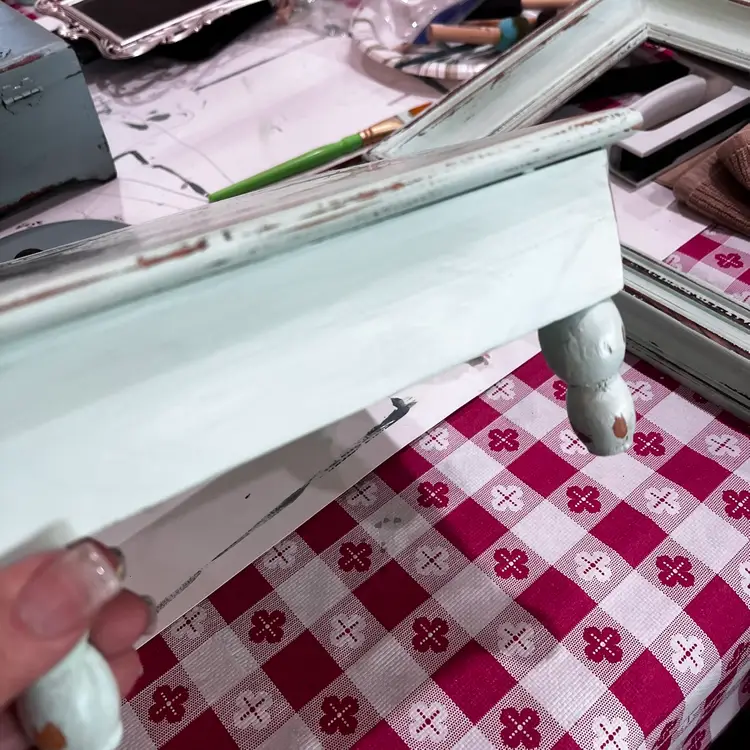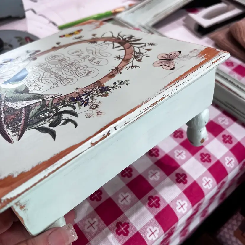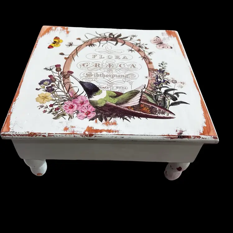 Measures approximately and 9 x 9 4 1/2 inches tall hand painted by me and transferred sealed