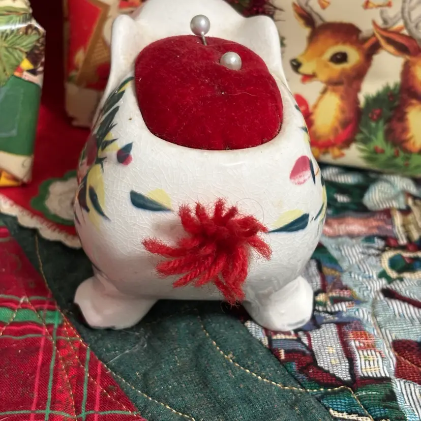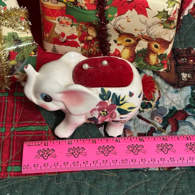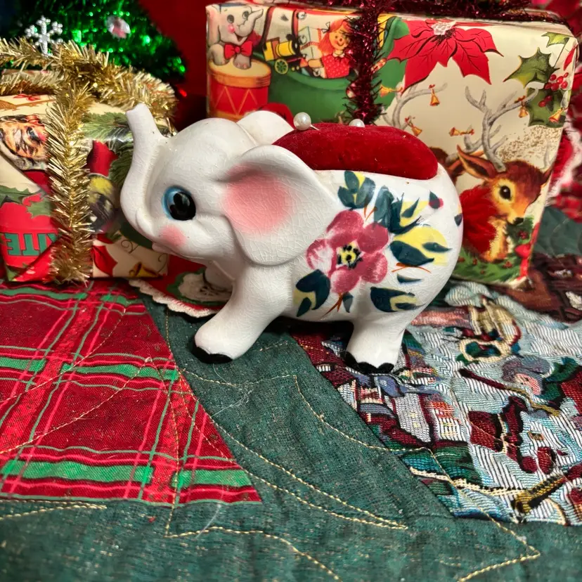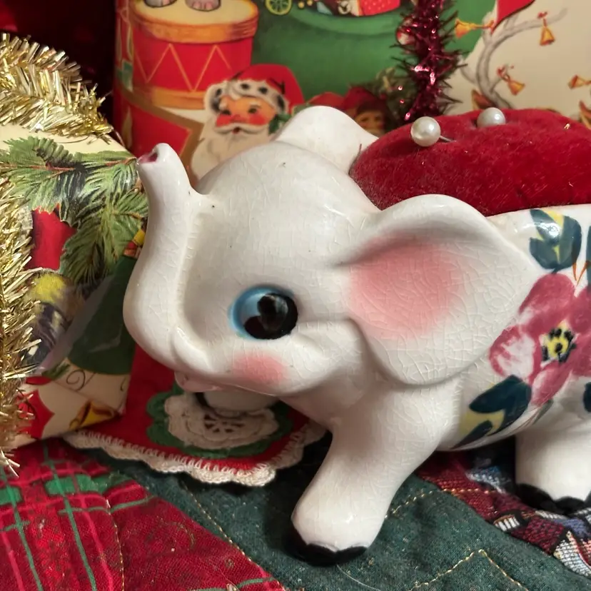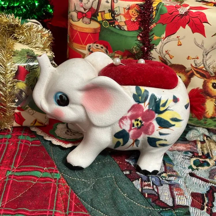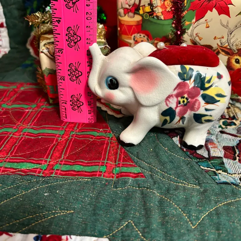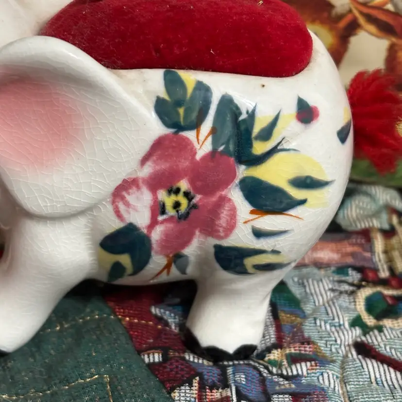 Your sewing pins and needles will never be happier attached to this Vtg darling elephant pin cushion. Great condition- no chips or cracks. Marked Japan