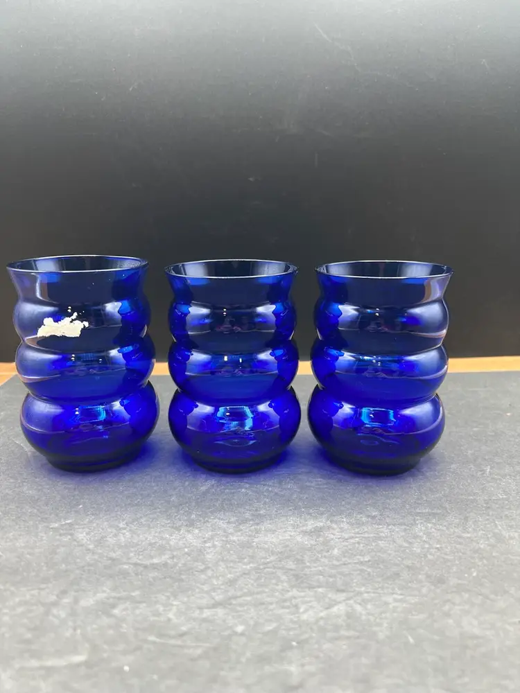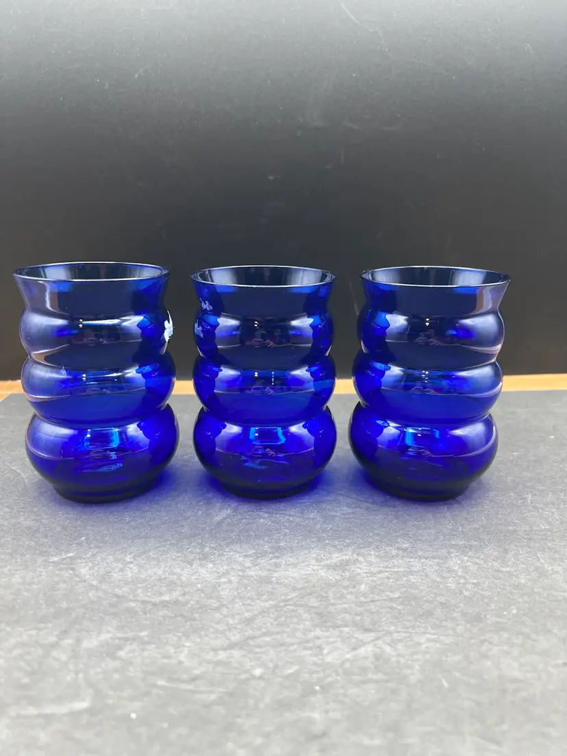 Vintage Louie Glass HARPO Cobalt Tumblers 4 1/8” In very good vintage condition, no chips or cracks 4 1/8” tall x 2 3/4” wide