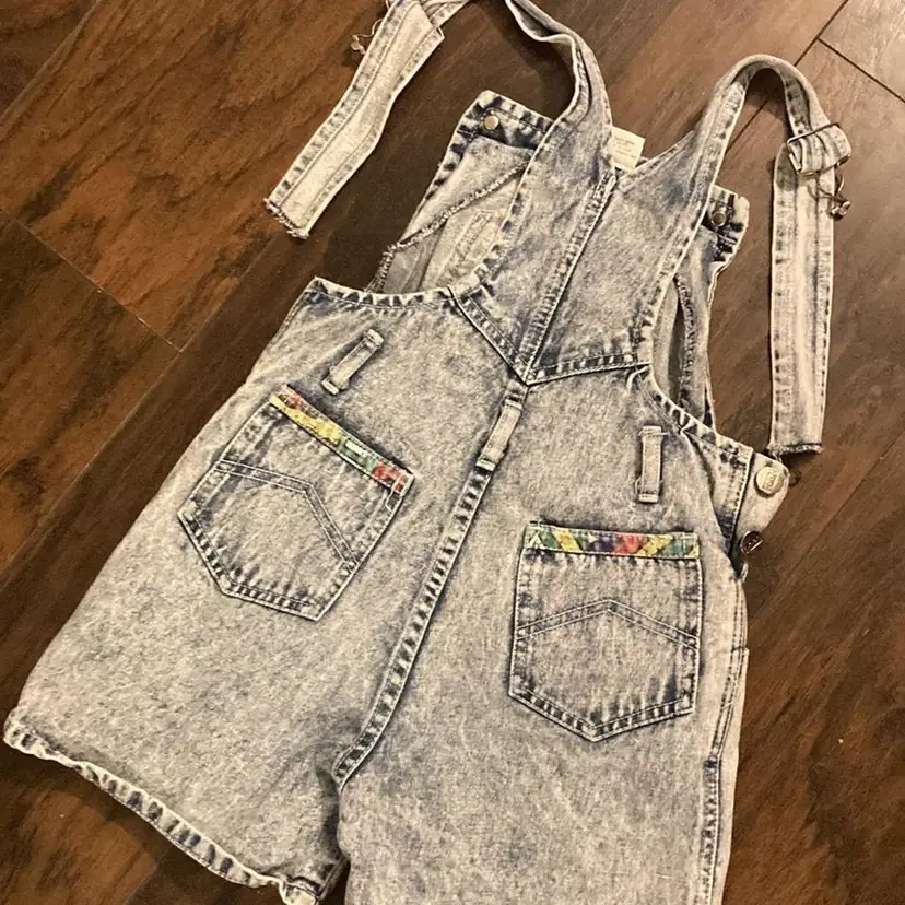 Kids vintage Jean short overalls Size 10 Good condition, with some wear #90skid #overalls #vintage #colorblock #patchwork