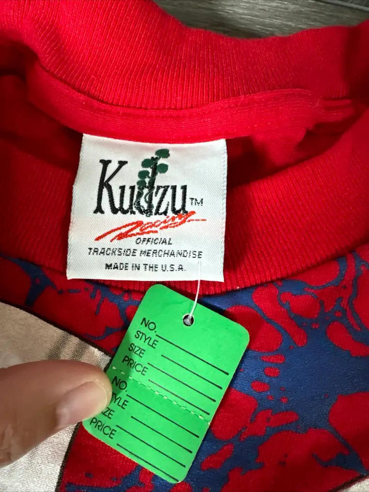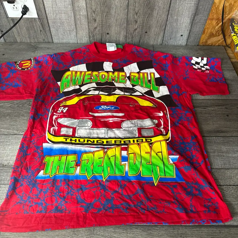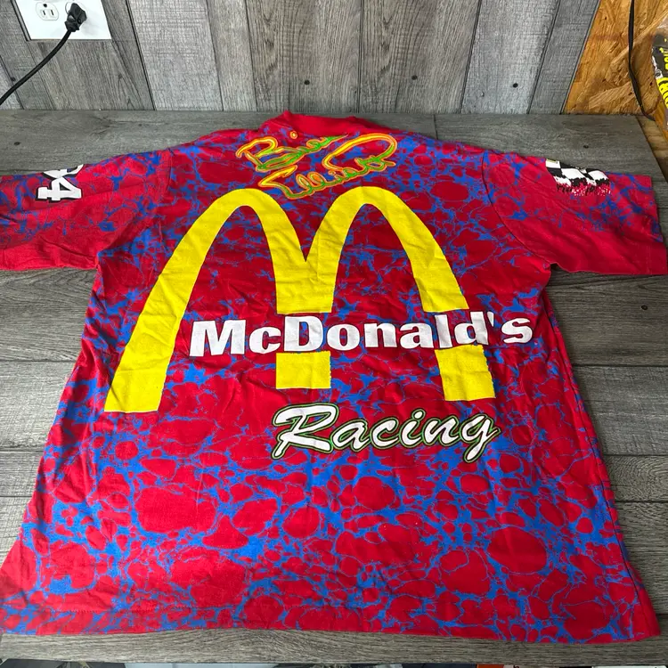 Show your love for NASCAR legend Bill Elliott with this officially licensed Kudzu t-shirt. The vibrant red color and all-over print design featuring the McDonald's racing car will make you stand out in the crowd. This XX-Large shirt is made of high-quality materials and proudly made in the United States. -What you see is what you receive, please see photos. -Pit to pit across 25” -From top to bottom 32” -Item is sold as is. -Does have a few marks. Please see pictures! -Free shipping with USPS mail.