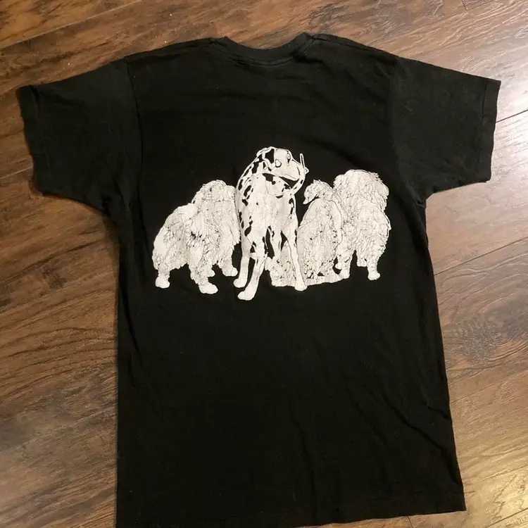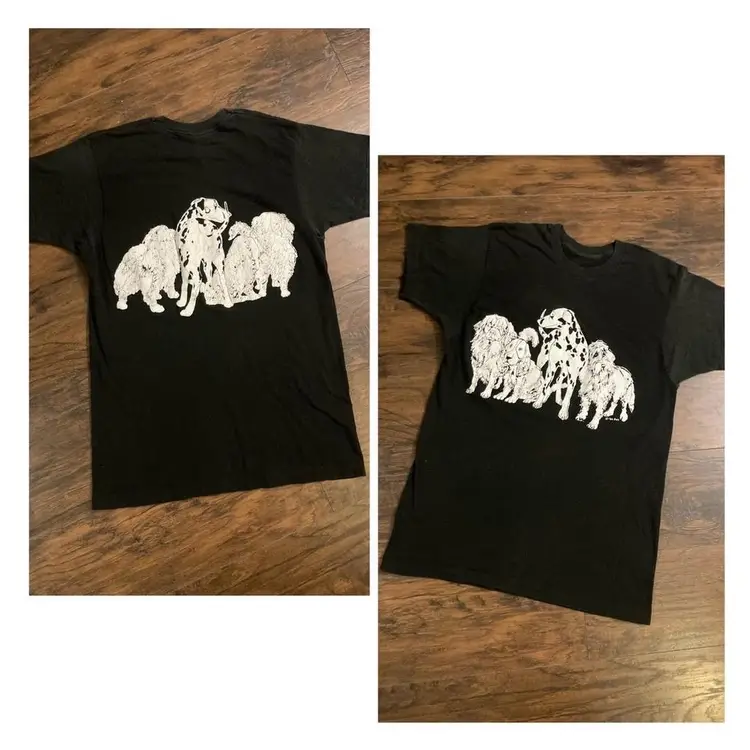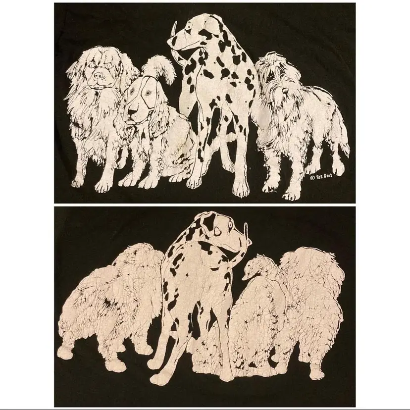 Single stitch dog front and back T shirt No tags I love this! so fun and cute with the dog front view and back view PTP 19.5" length 30.5" great condition with some wear on the graphics #dogbutt #singlestitch #dogshirt #vintage