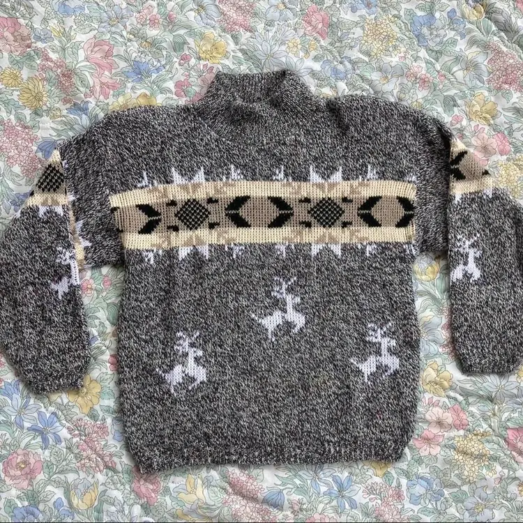 Moose sweater! No tags PTP 18" Length 21" Sleeve 17.5" Good condition minor pilling. Has shoulder pads. Very cute fit #sweater #turtleneck #vintagesweater #grandpacore #winter