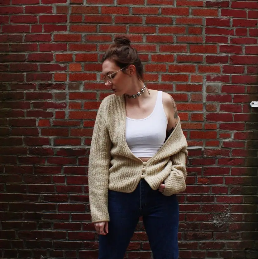 Season 1 Monica fashion was the best part of the entire series! Rachel who?? True 90’s neutral with a deep neckline and, of course, some angsty slouch. A scratch on one of the buttons as pictured. Vintage sizes are often off, so please check the measurements to make sure it’ll fit! Size: M colors: beige [measurements} Shoulders: 17 in Bust: 39 in Sleeve length: 27 in Length: 24 in model is a medium SHIPPING