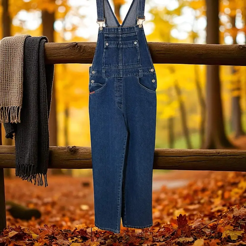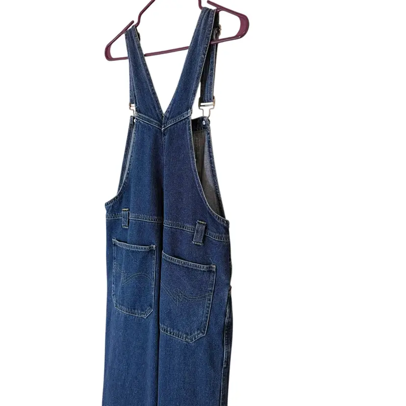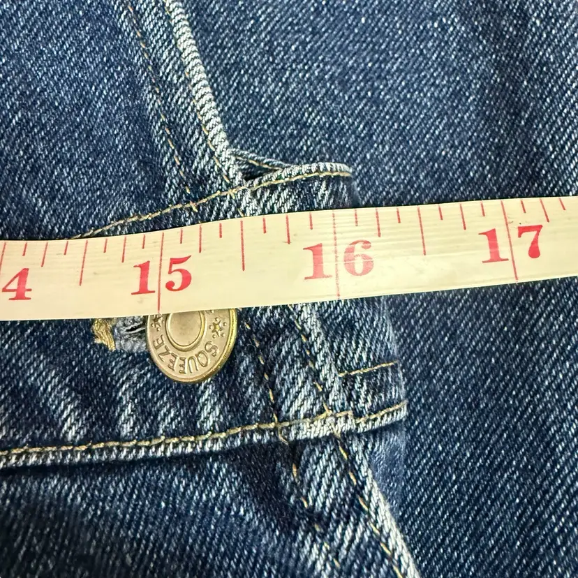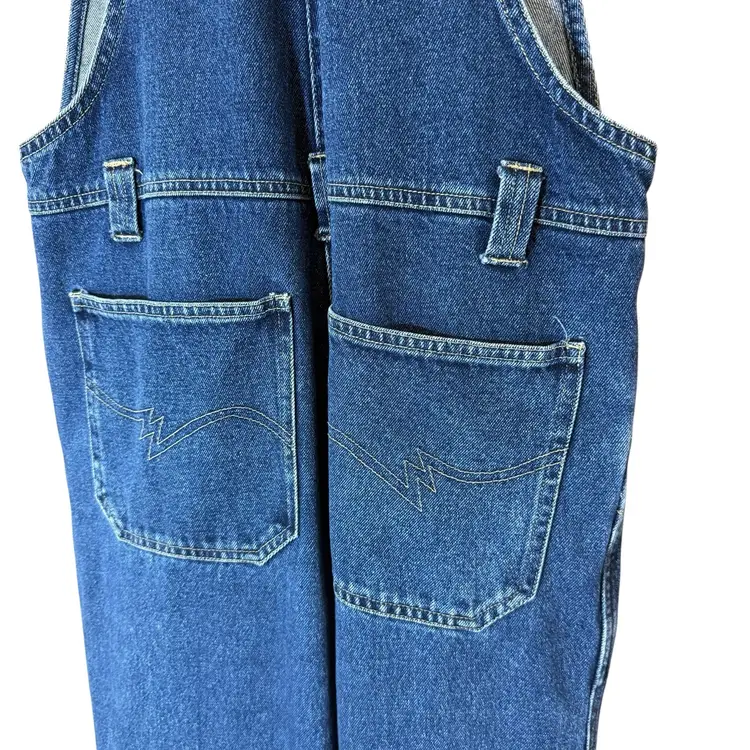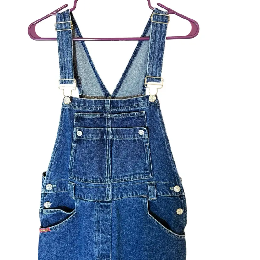 The product is a pair of 90's Y2K Squeeze Jeans Blue Denim Overalls in a women's size medium. These overalls are vintage from the 1990s with a grunge look, made of 100% cotton material. The medium blue wash, straight leg and original style make them a great addition to any casual outfit, perfect for those looking for a retro and unique fashion statement. Made in Bangladesh, these overalls offer a piece of nostalgia from the grunge era.