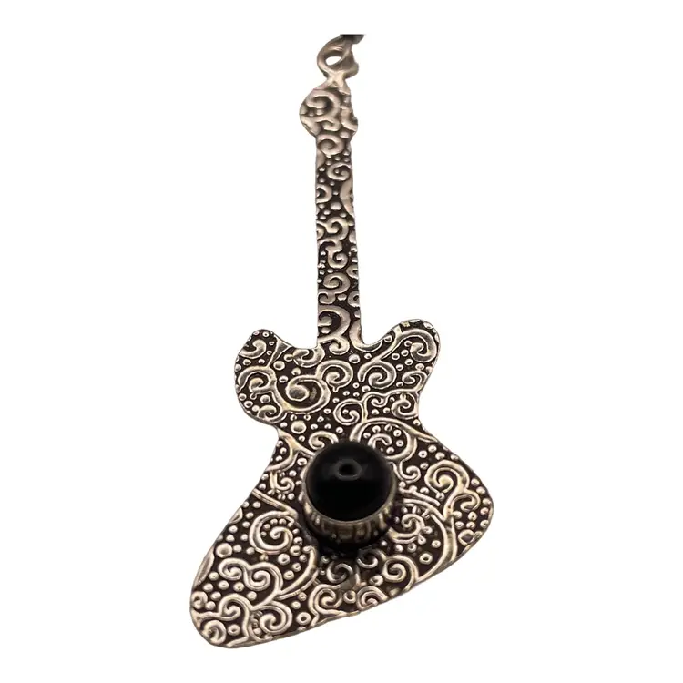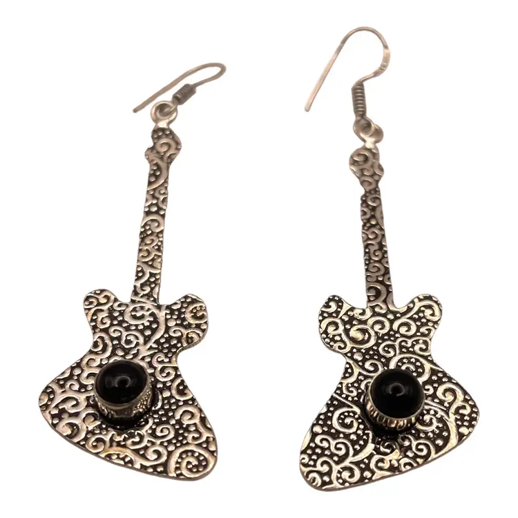 Discover the unique 925 Black Onyx Guitar Earrings, crafted from sterling silver. Measuring 3 inches and weighing 6.8 grams, these pre-owned earrings are in excellent condition with no defects. Perfect for music lovers and those who appreciate statement jewelry. Add a touch of rock and roll to your style!