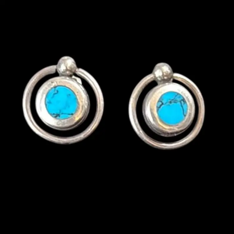 925 Mexico Taxco 18” Chain 1 1/4 “ Turquoise pendent Pierced Turquoise Earrings 3/4” chain with Turquoise pendant weight 10.22 g Earrings weight 8.45 g