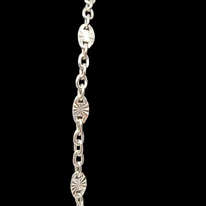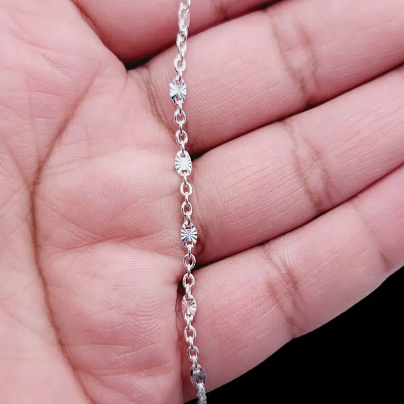– Occasion: Birthday, Valentine's Day, Anniversary, Christmas, Engagement, Graduation, Mother's Day, Wedding – Color: Silver – Main Stone Color: N/A – Material: Sterling silver – Metal: Sterling Silver – Item Length: 9 in – Main Stone: No Stone – Brand: Unbranded – Type: Anklet – Metal Purity: .925, Sterling – Style: Chain – Base Metal: Sterling silver – Coating: Rhodium Plated – Number of Gemstones: 0
