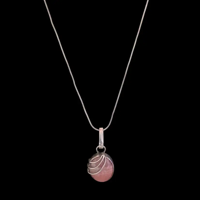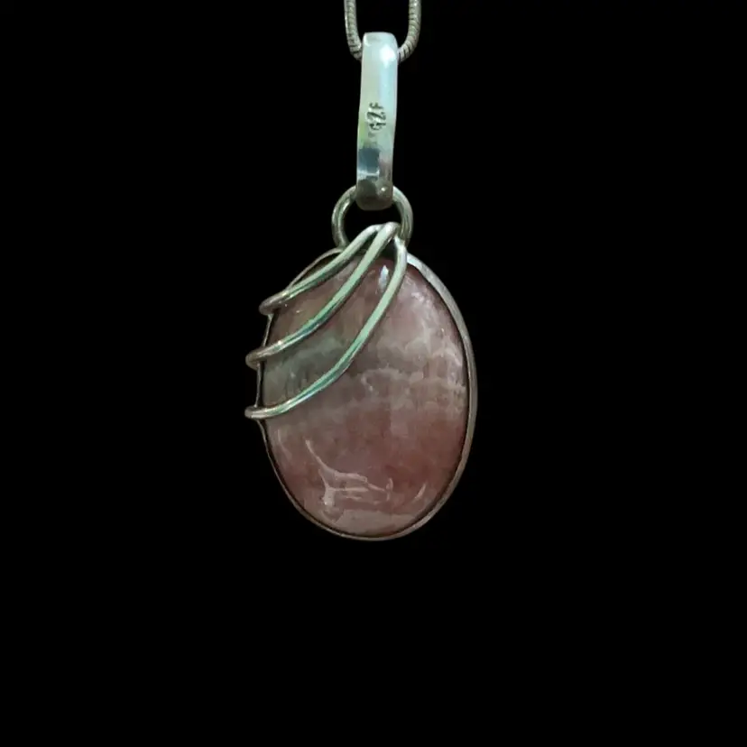 Chain measures 18’ Made in Italy 925 silver .Rhodochrosite pendant 925 silver measuring 1’1/2 with bale.