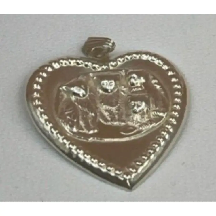 Pendant is 1.5 inches with bale in a heart shape Designed with textured high relief four cats with milk dish Marked 925