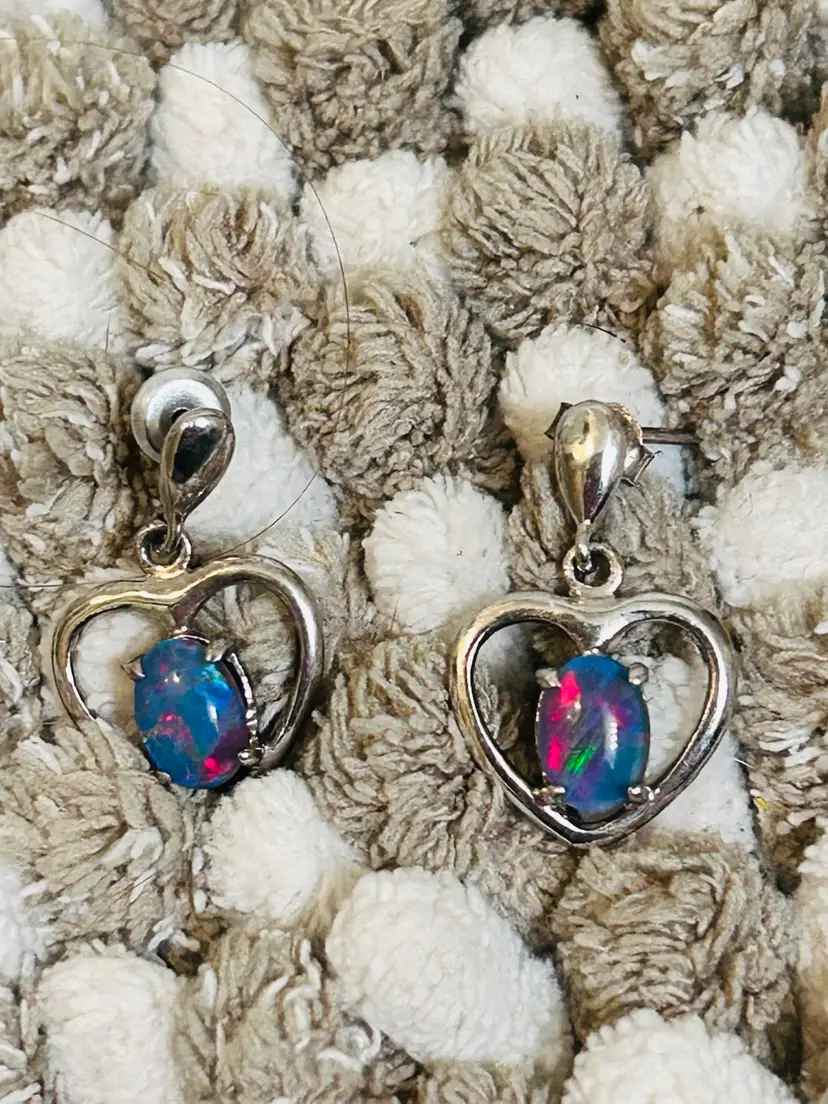 These earrings are made of 925 sterling silver and feature a beautiful inlaid blue fire opal as the main stone. The heart-shaped design and dangle/drop style make them a perfect accessory to represent love and romance. The vibrant blue color of the opal adds a touch of elegance to any outfit, making them a delightful addition to any jewelry collection.