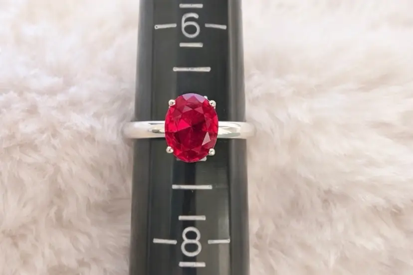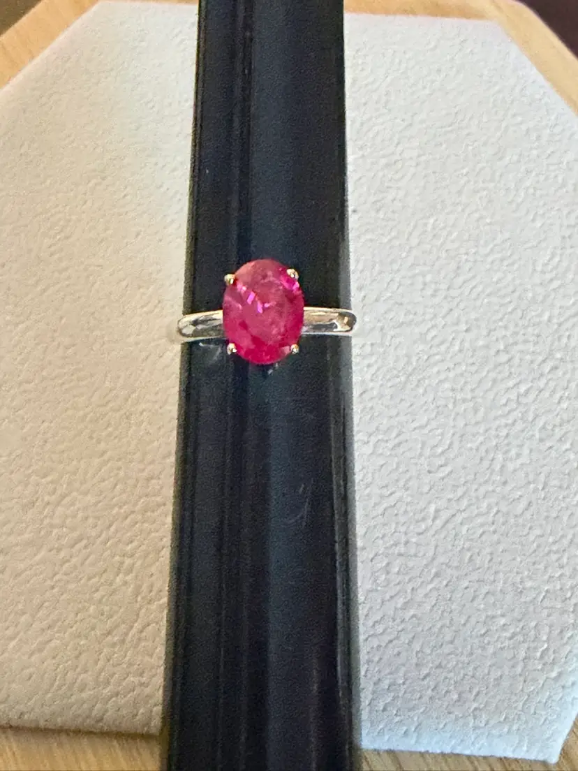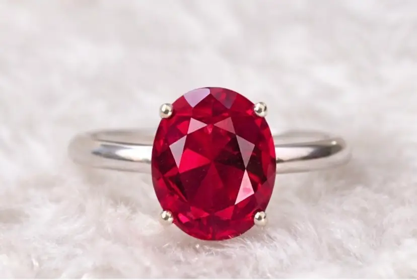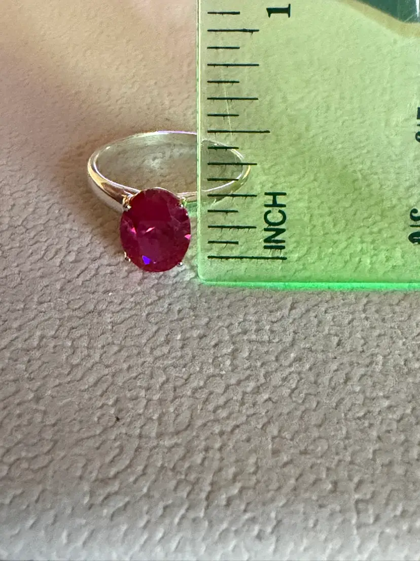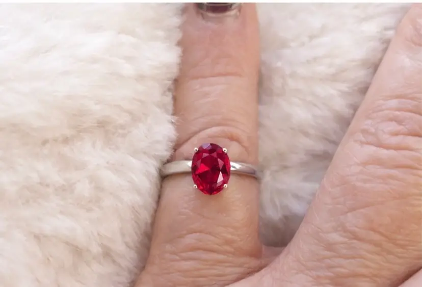 Oval ruby gemstone solitaire ring set in 925 sterling silver.