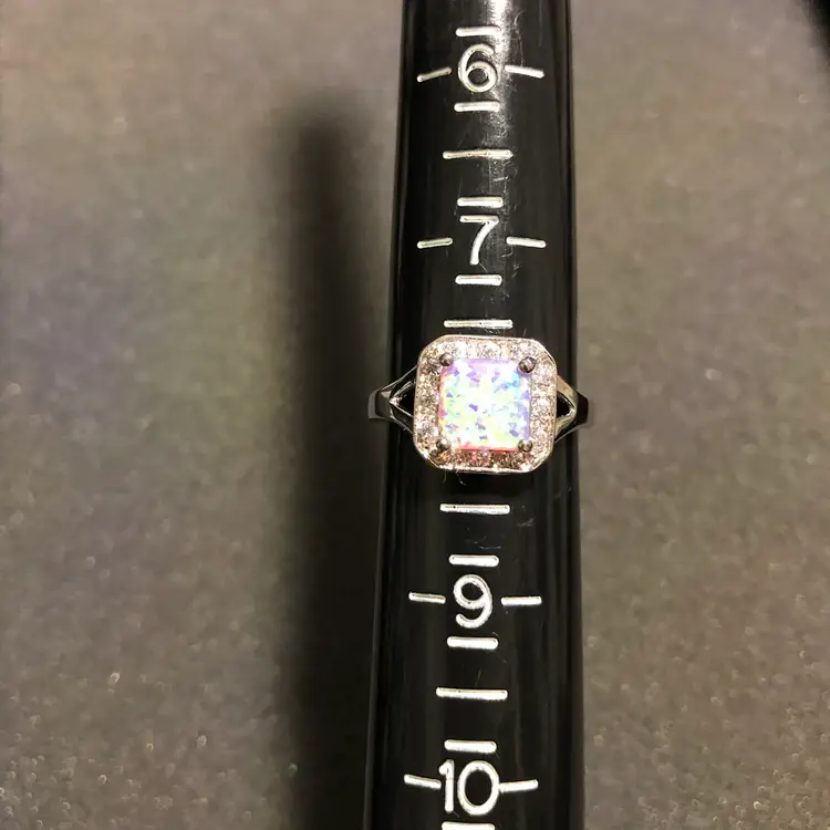 925 Sterling Silver Simulated Opal Size 8 Ring