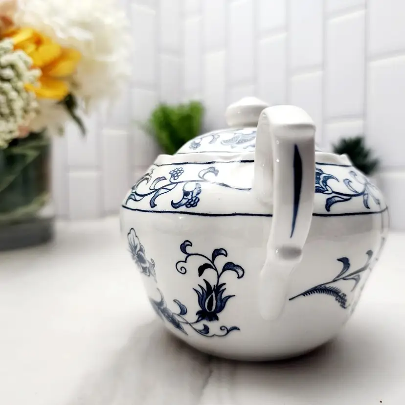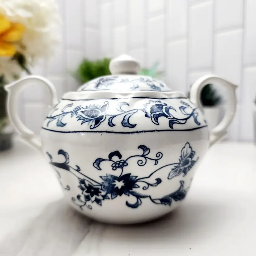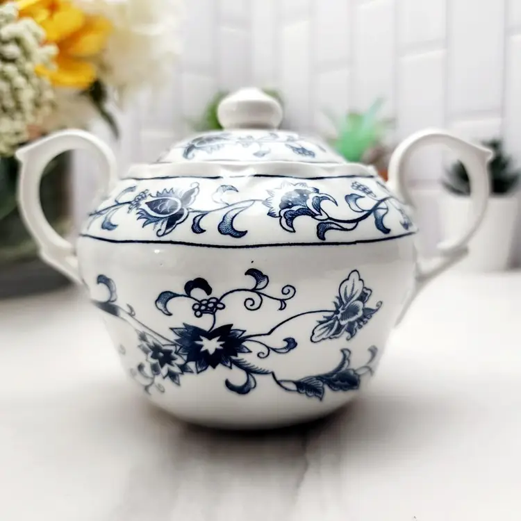 Super Cute Sugar bowl with lid. Blue Pattern similiar to blue onion, blue nordic & blue danube.