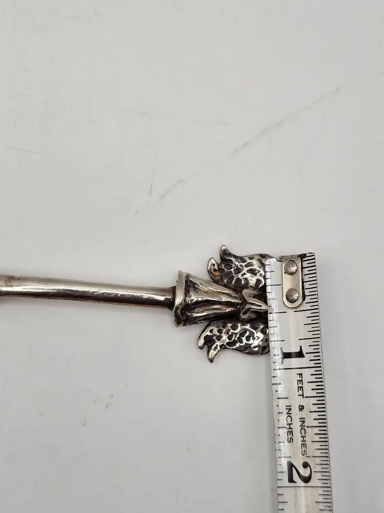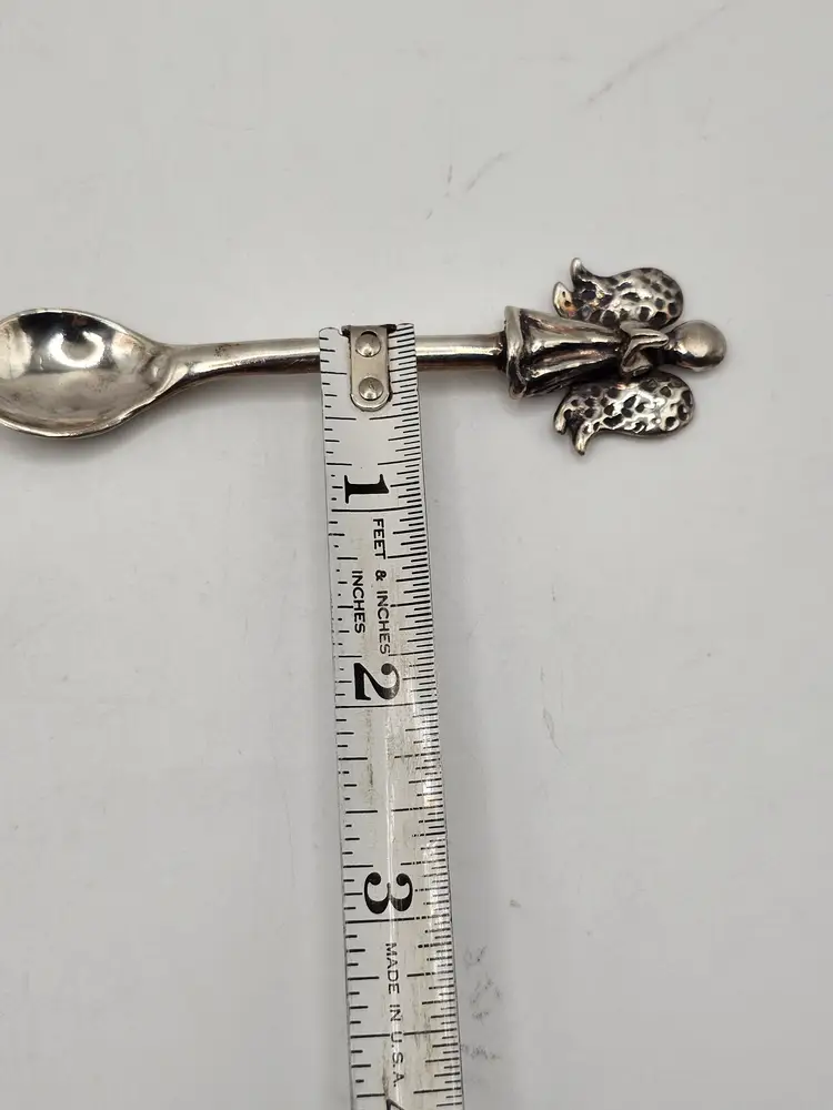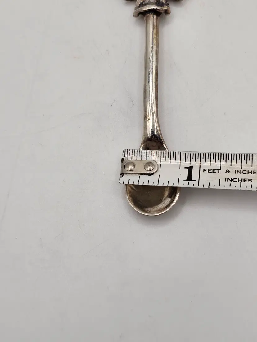 This spoon is in perfect condition. Very heavy. Can't find the 925 mark but tests ss. Measurements in pics.