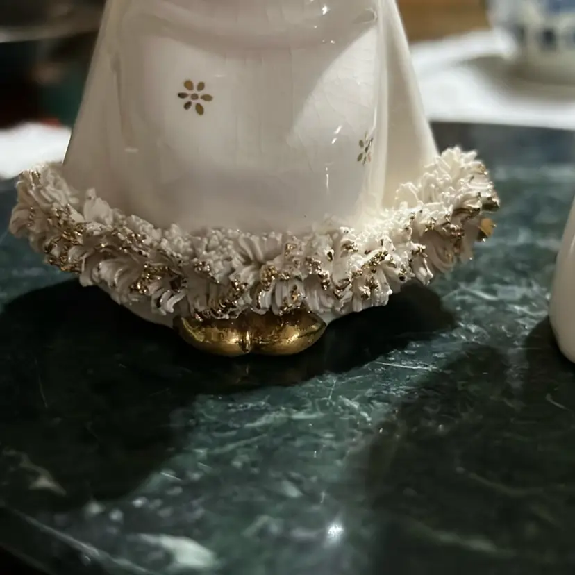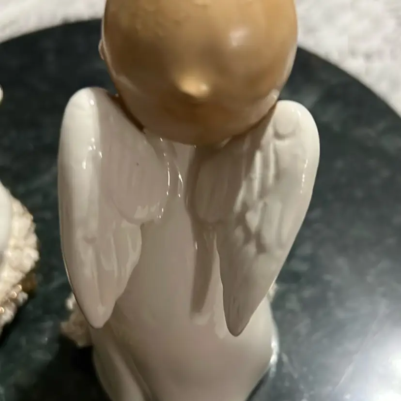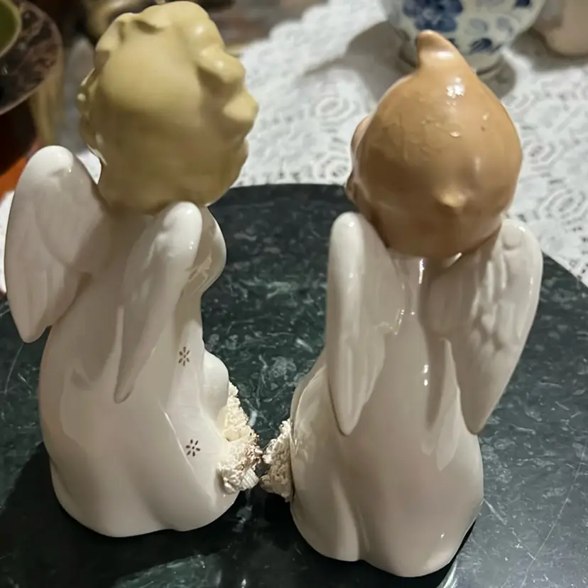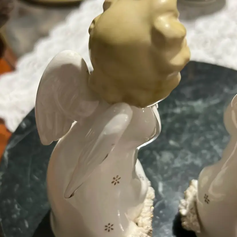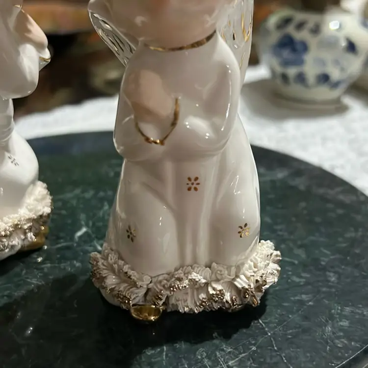 A 1950’s pair of vintage Napco ceramic kissing angel figurines With Spaghetti Details No Repairs Excellent Condition