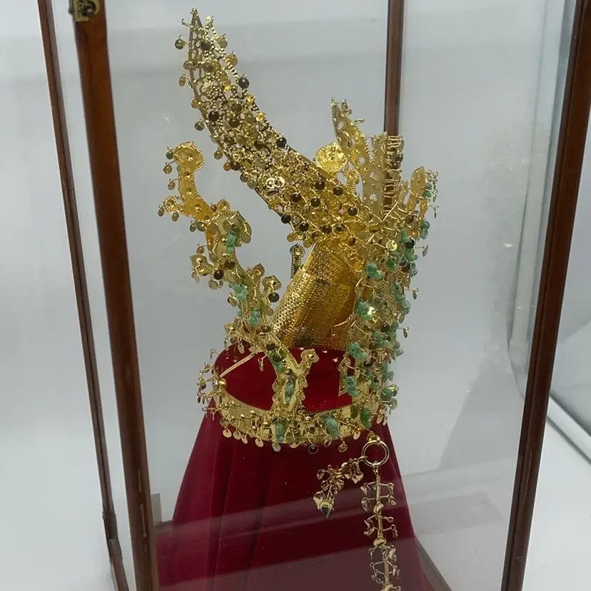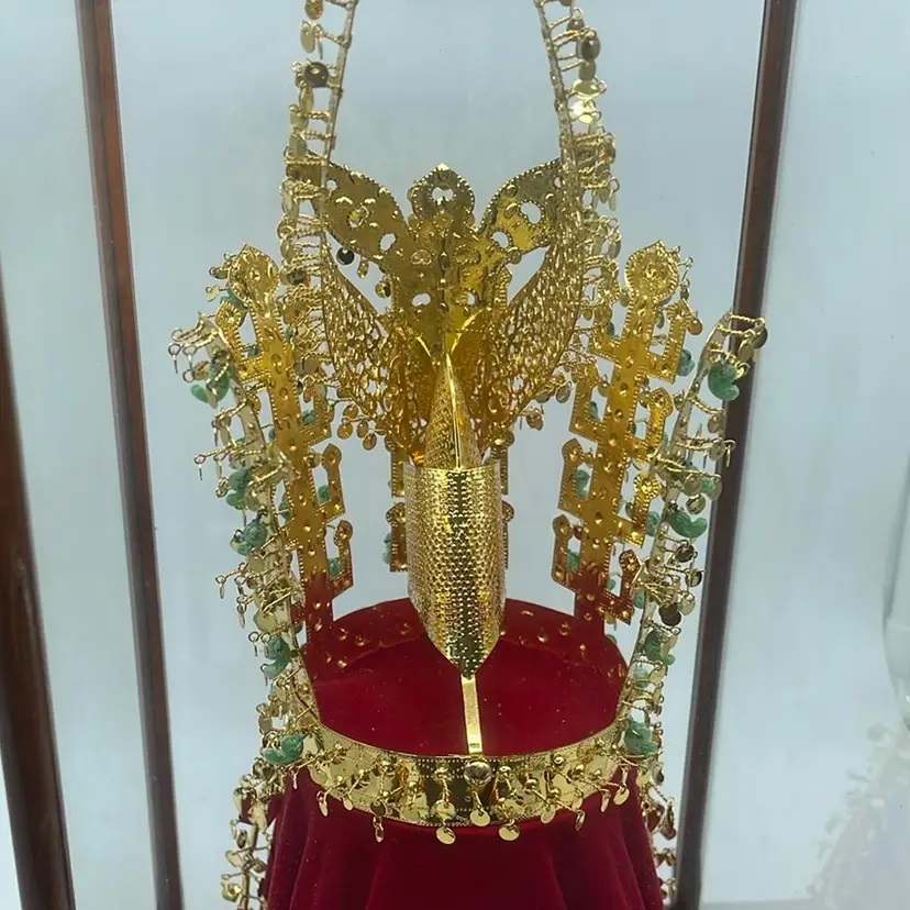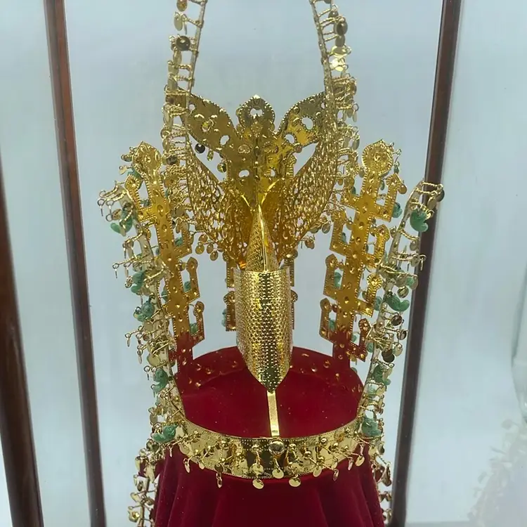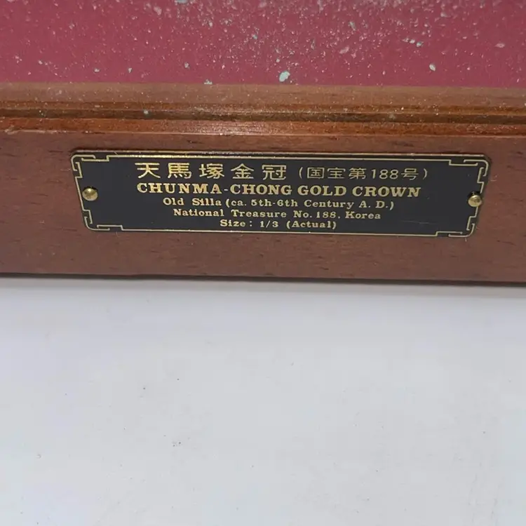 The crown features intricate goldwork, adorned with jade and glass ornaments, and is topped with representations of tree branches and antlers, symbolizing the connection between the earthly and spiritual realms. The "Heavenly Horse" motif, from which the tomb derives its name, is also a significant element in Silla art. Replicas and smaller versions of such treasures are often produced for cultural appreciation and as collectibles.
