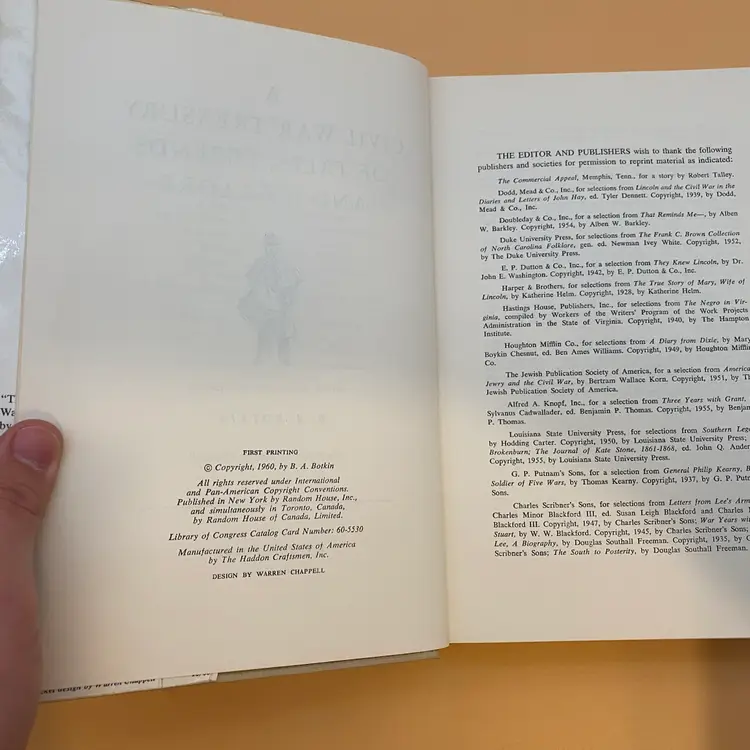 You are purchasing one A Civil War Treasury: Of Tales, Legends and Folklore Hardcover Book w/ Dust Jacket by B.A. Botkin and Random House Publishing from 1960. This is a First Edition Printing. This Book is in overall good condition. Minor wear, mostly just on the Dust Jacket as shown in the final images.