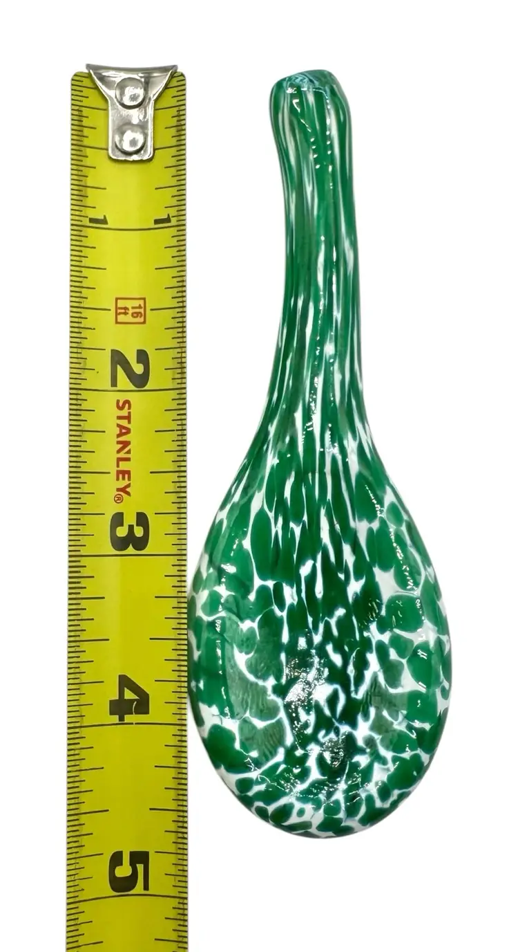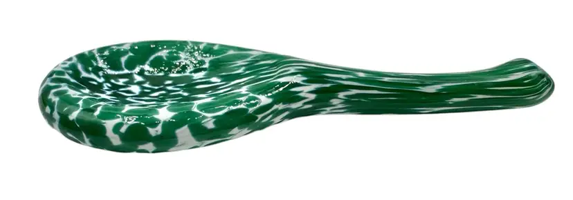 Short, heavy glass spoon, perfect for tasting soups and sauces.