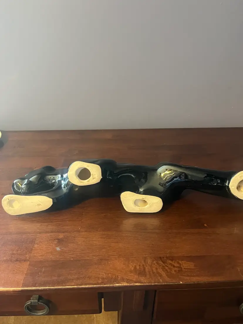 This particular black panther figurine embodies the mid-century modern aesthetic with its streamlined form and glossy finish. Such pieces were commonly used as decorative accents on mantels, shelves, or tables, adding a touch of sophistication and a hint of the exotic to interiors. While specific makers like Royal Haeger are known for their high-quality ceramic animal figures, many other manufacturers produced similar, yet unsigned, decorative items that are still appreciated by collectors today.