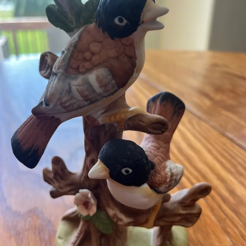 Figurines like this, depicting birds on branches, were particularly common during the mid-20th century, a period when decorative ceramics saw a surge in popularity. Manufacturers often produced these in series, featuring hand-painted details to give each piece a unique, albeit mass-produced, appeal. While not typically considered high art, they hold sentimental value for many and are collected by enthusiasts of decorative arts and specific animal motifs.