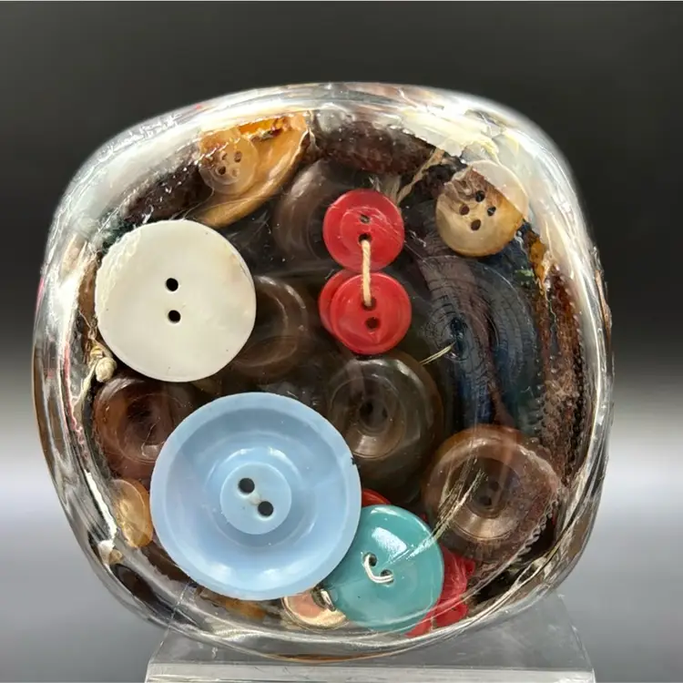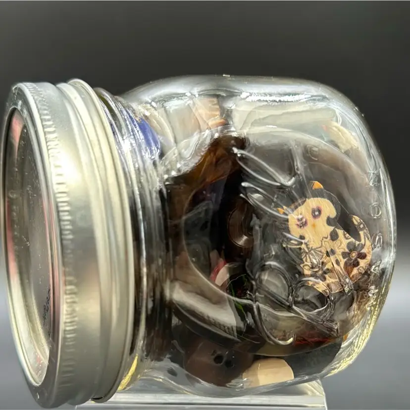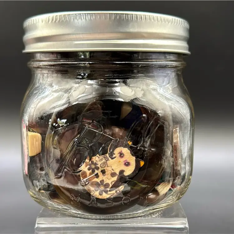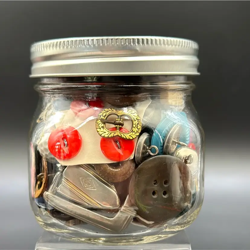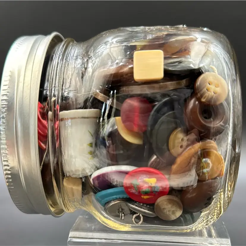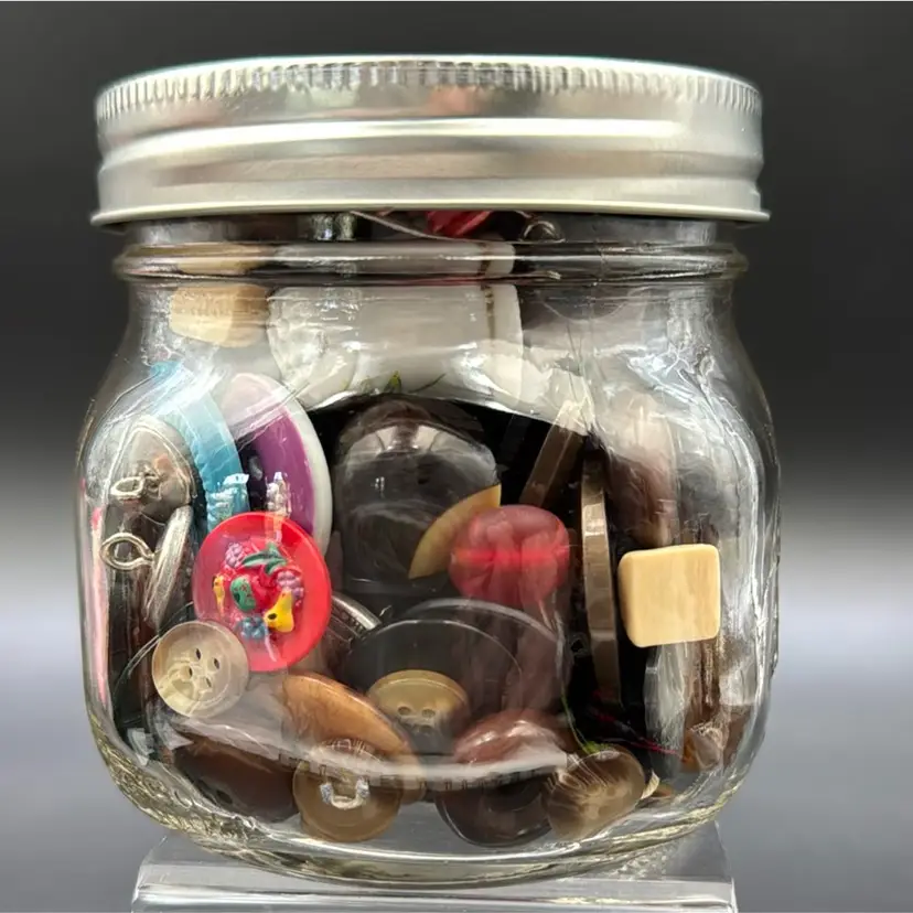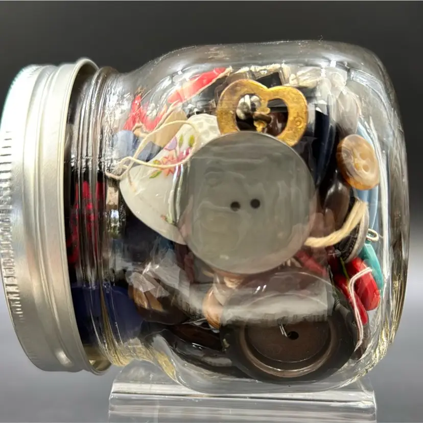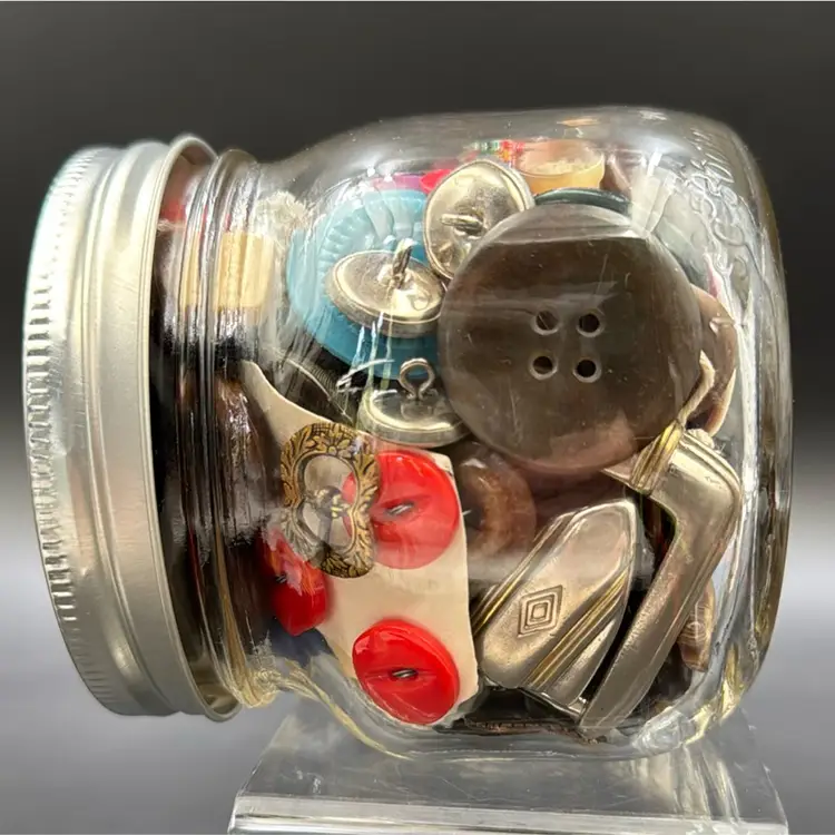 31/2”T 31/4”W wonderful jar assorted buttons and things