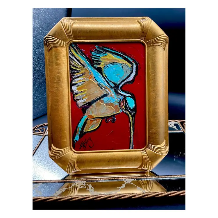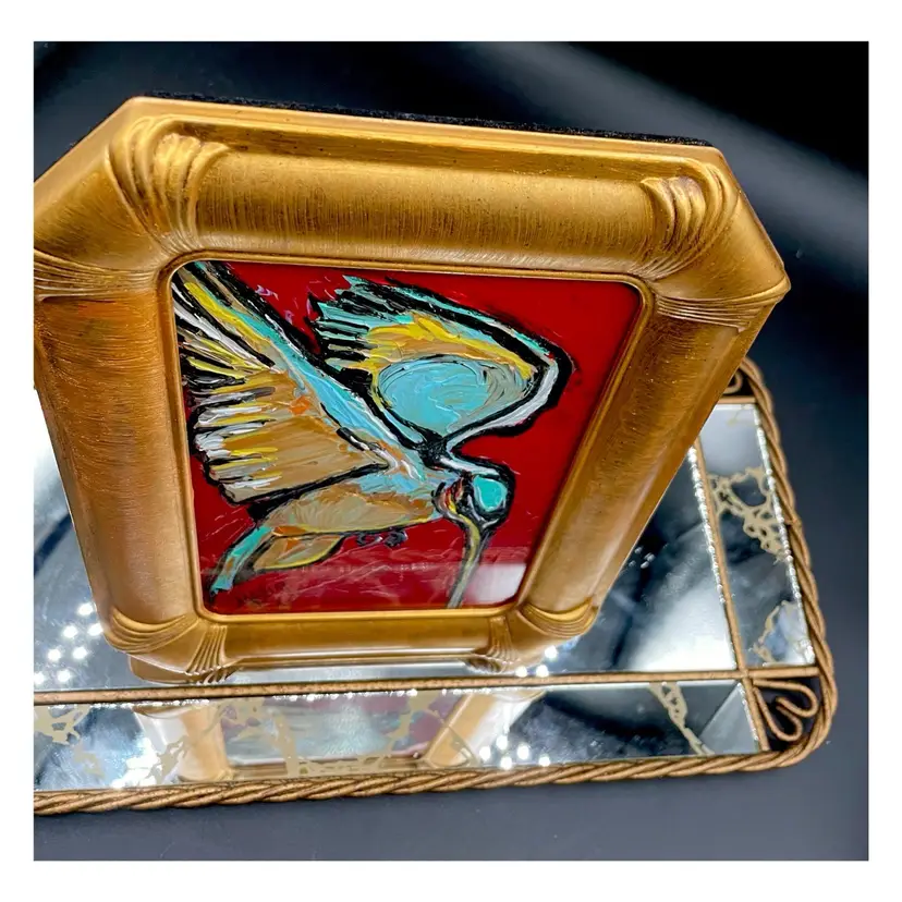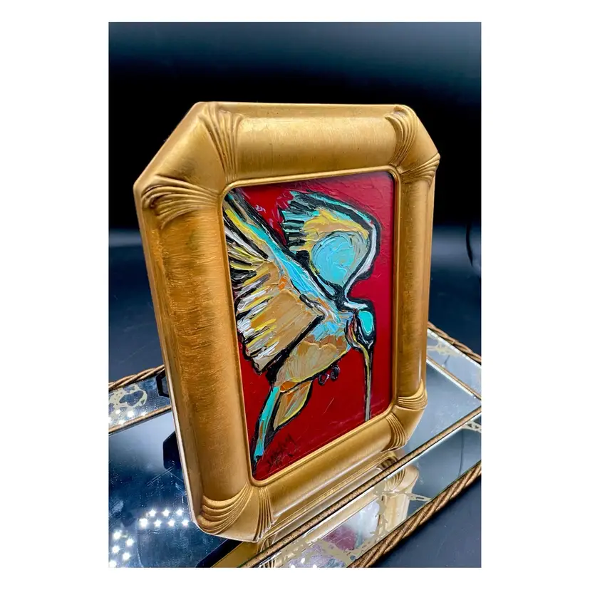 New original hummingbird painting On 5”x7” watercolor paper In 7”x9” preloved frame With glass. Acrylic painting #1177