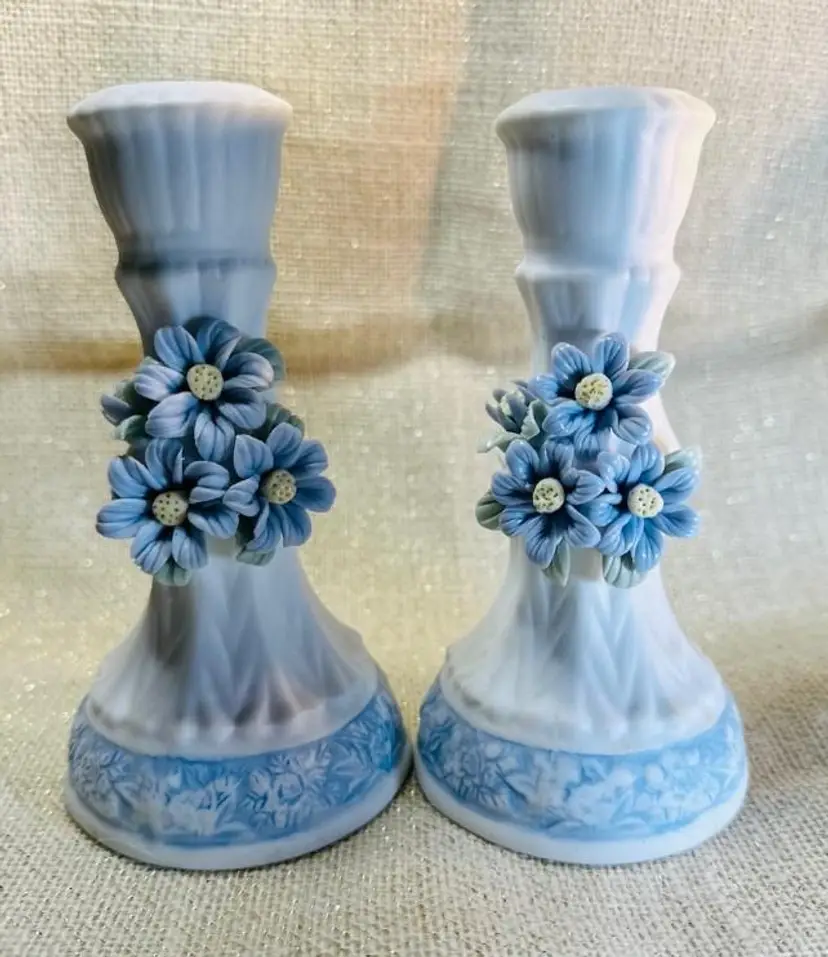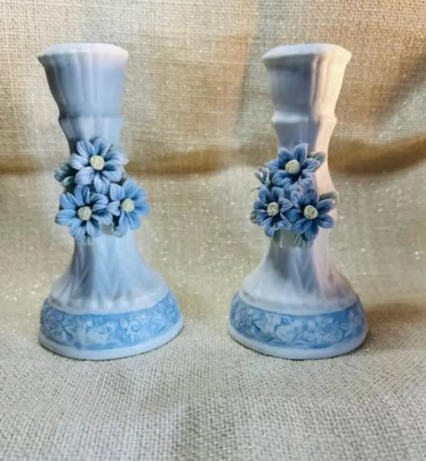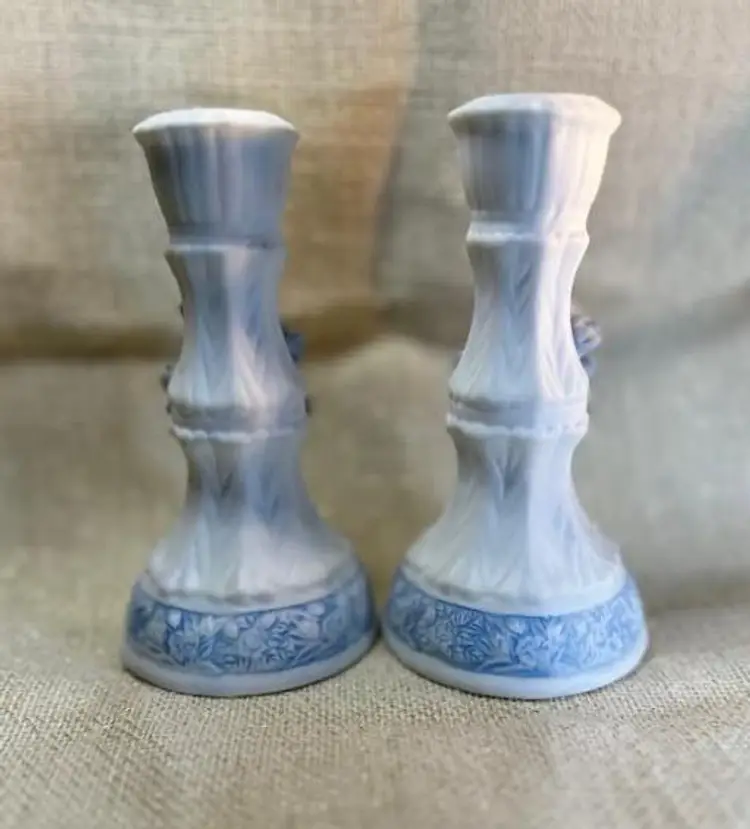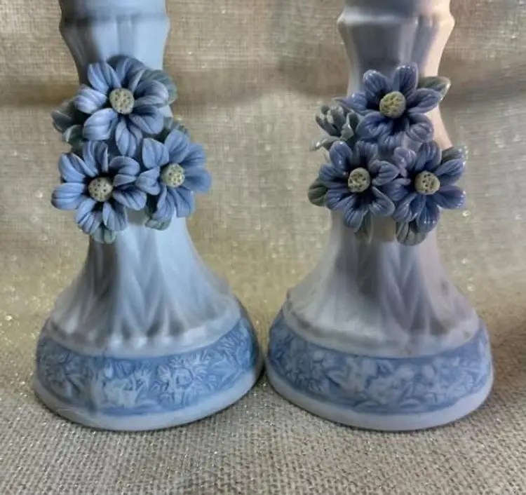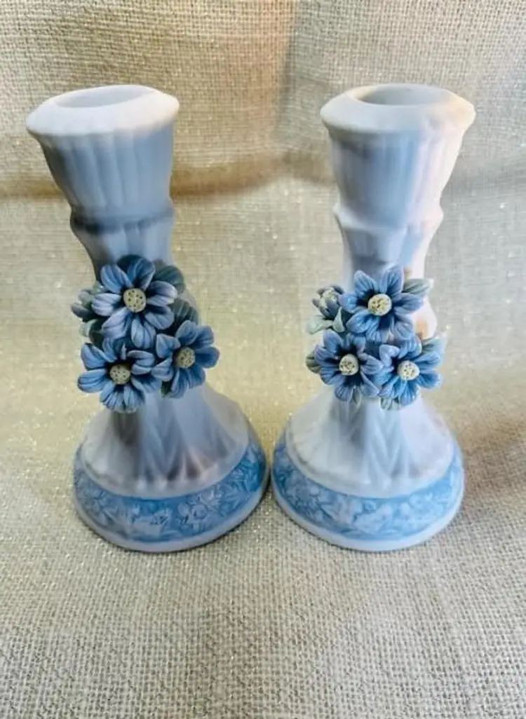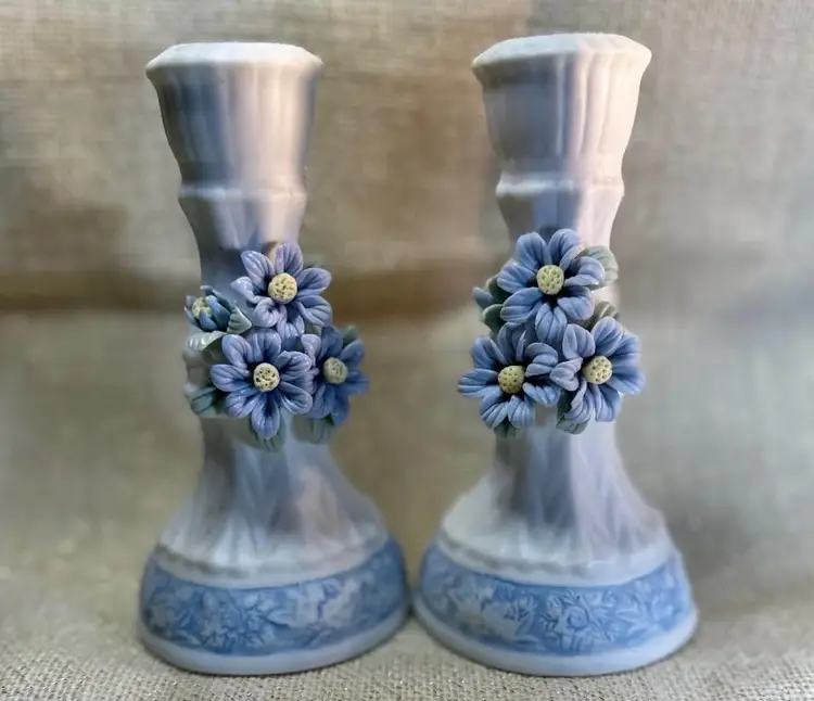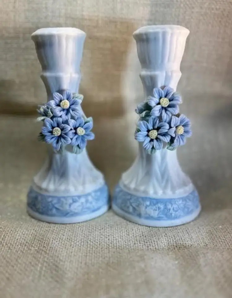 Elevate your home decor with this pair of exquisite candle holders from Hermitage Pottery. Each piece showcases a elegant blue and white flower pattern, bringing a touch of sophistication to any room. The flat finish on the porcelain material ensures a smooth surface that highlights the intricate design and enhances its classic appeal.Crafted to accommodate standard-sized candles, these 6-inch tall candle holders make a harmonious addition to your living space. The set includes two candle holders, allowing for a symmetrical display on your mantle or coffee table.