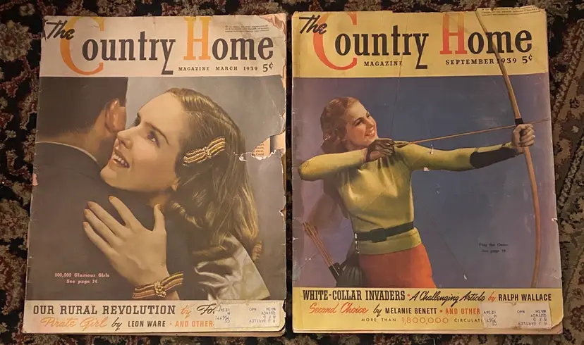 The Country Home Magazines 1939 September & March Issues Full issues- fair condition. I don’t believe any pages are missing but you can see how dogeared they have become over time..still pretty cool. Lots of cool ads and signs of the times:).