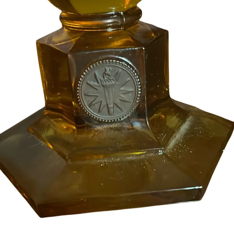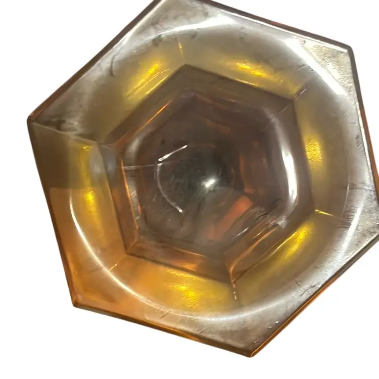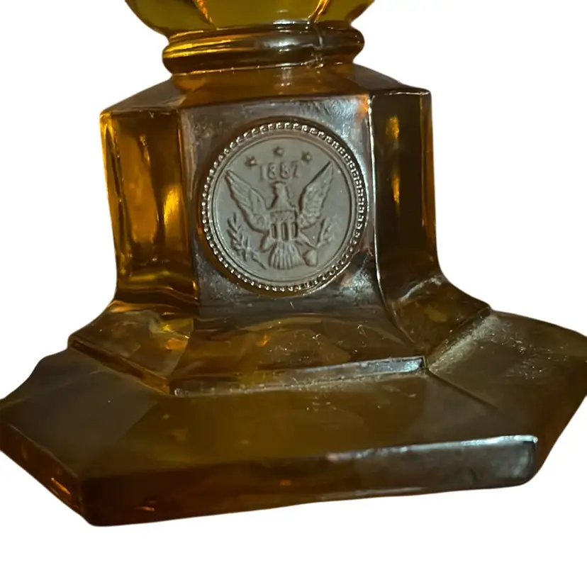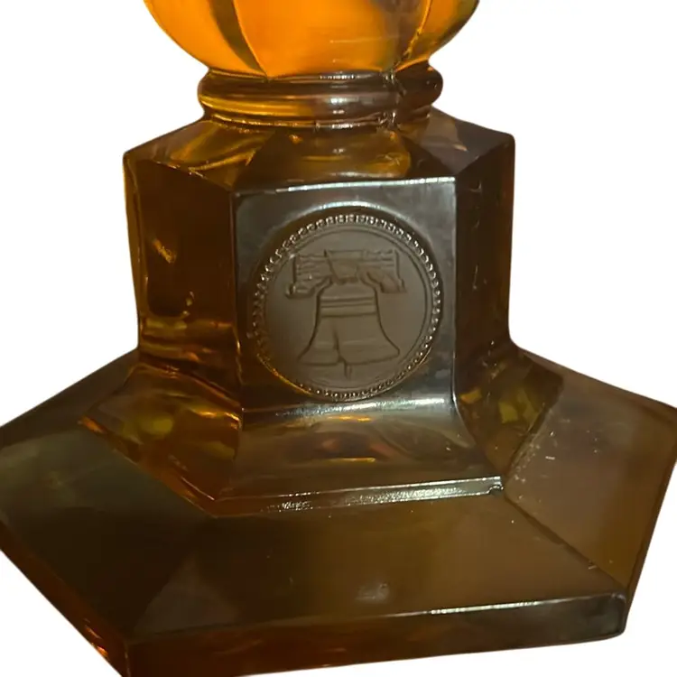 This particular amber coin glass candlestick exemplifies the mid-century American glassmaking aesthetic. The combination of the rich amber color, the intricate "coin" detail, and the classic candlestick form makes it a desirable piece for collectors of vintage glassware. These candlesticks were produced as part of a larger collection, often sold as individual pieces or sets, and are appreciated for their decorative appeal and historical significance.