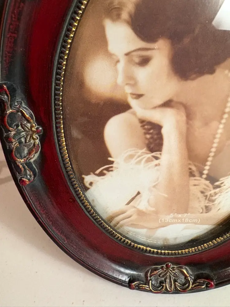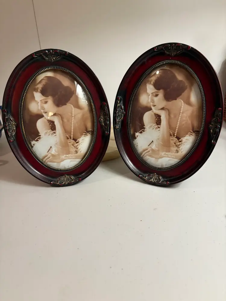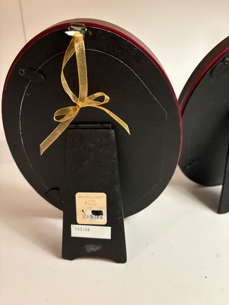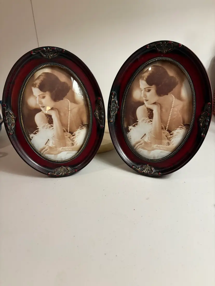 Lovely details on these oval frames with domed glass. They measure 9” X 6 1/2”