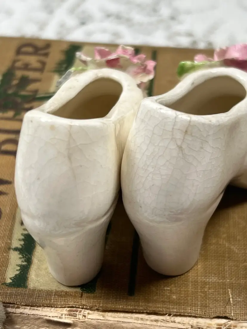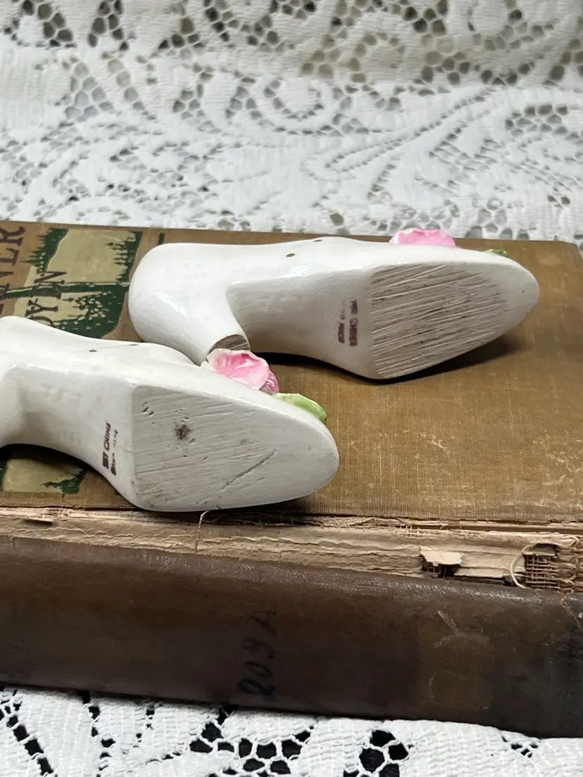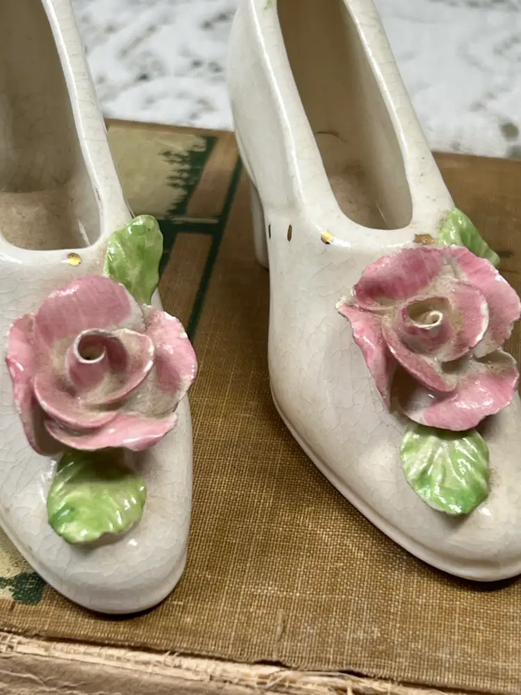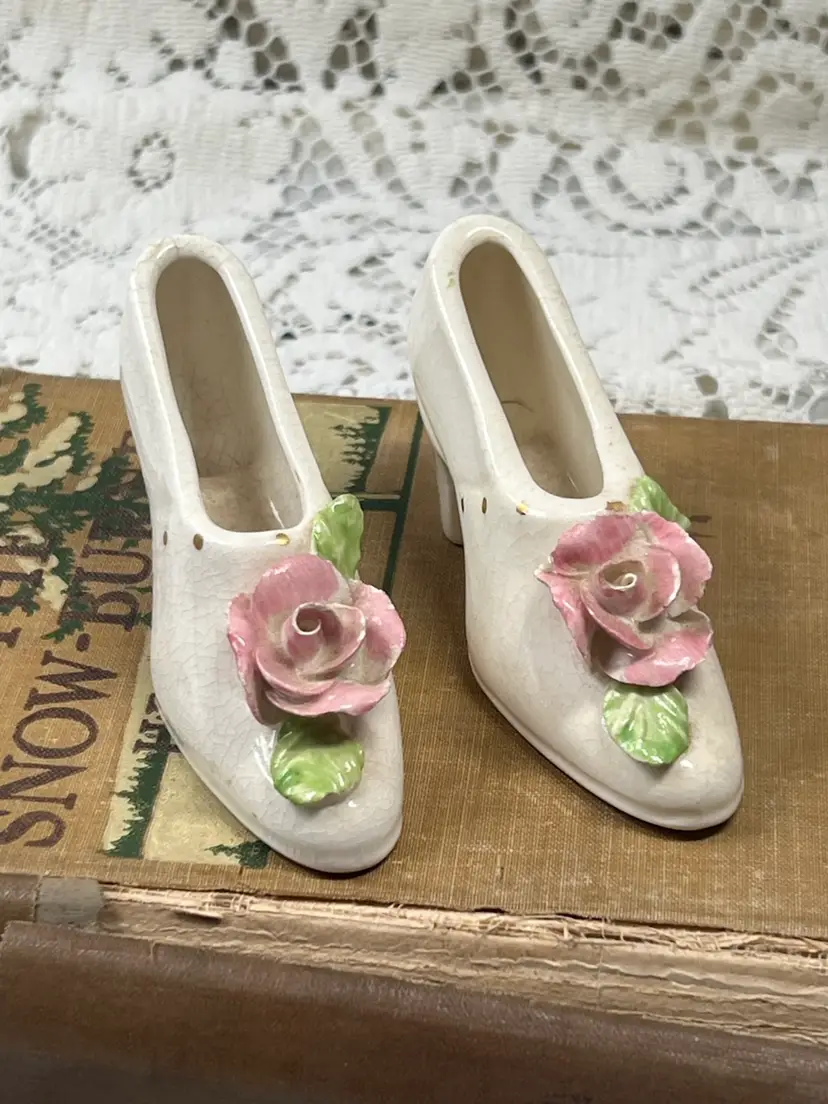 A Pair Of Pink Applied Flowers, Handmade Jet, China Company, High Heel Shoes, 4" X 2"