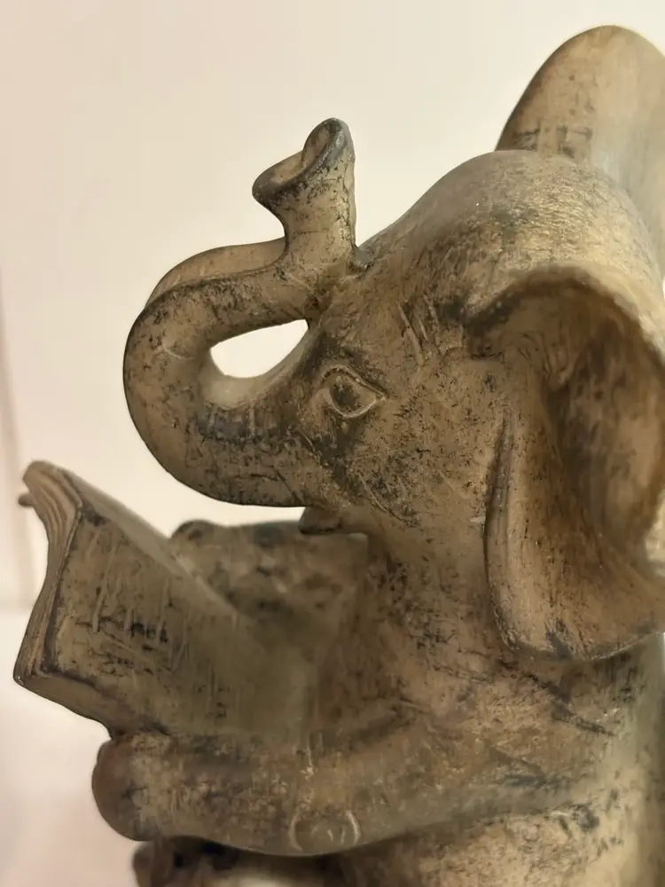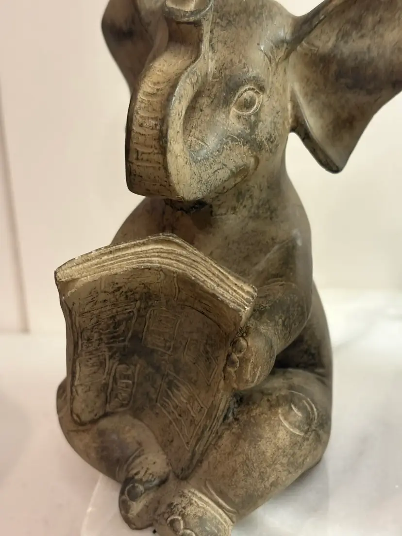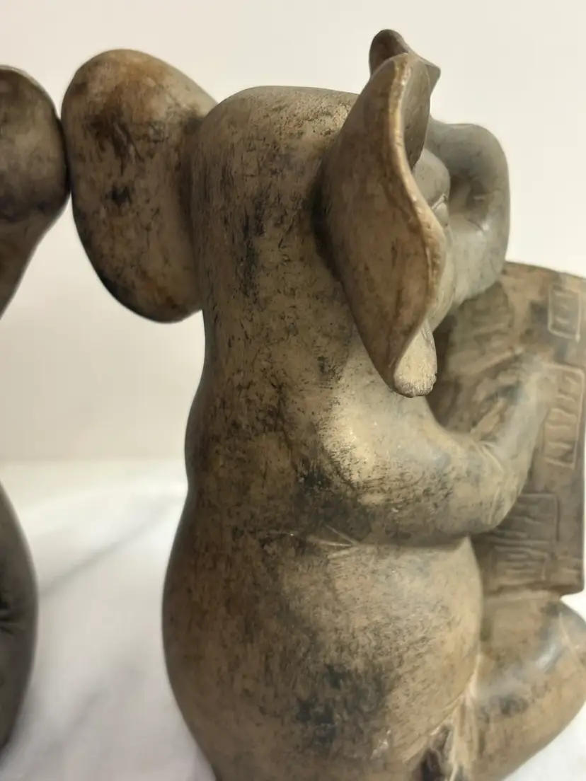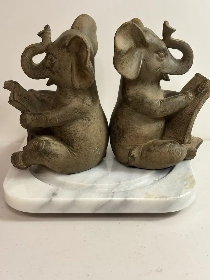 This product is a pair of reading elephant bookends in brown color, perfect for adding a touch of animal theme to your home décor. The bookends are designed to hold up your books and also serve as a decorative piece on your tabletop. Made of durable materials, these bookends are a functional and stylish addition to your home.