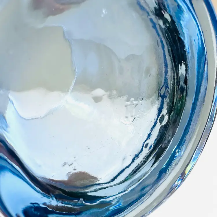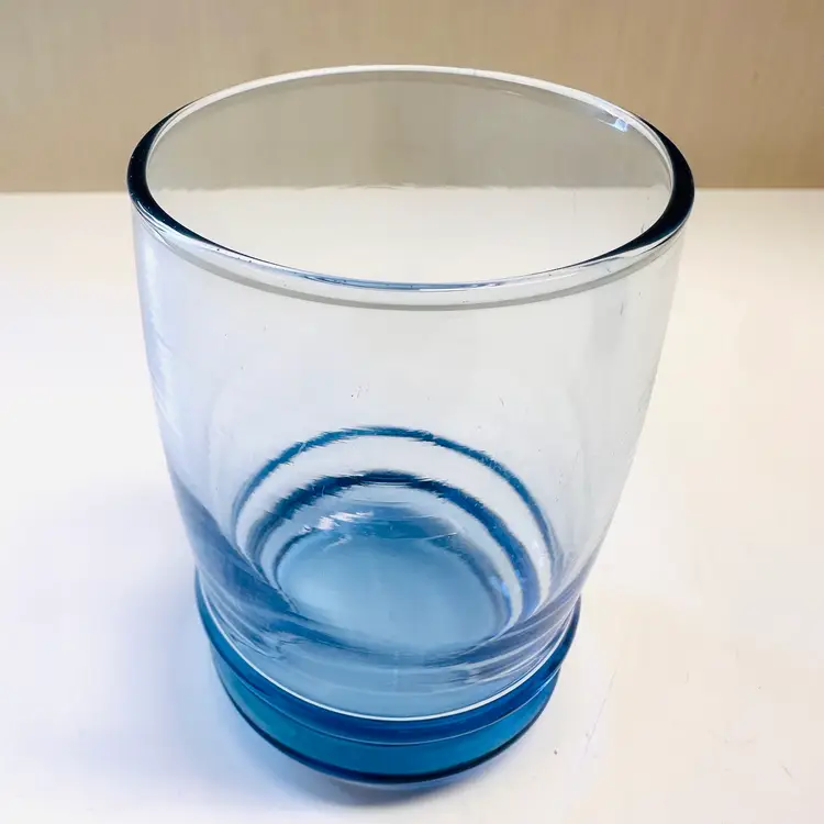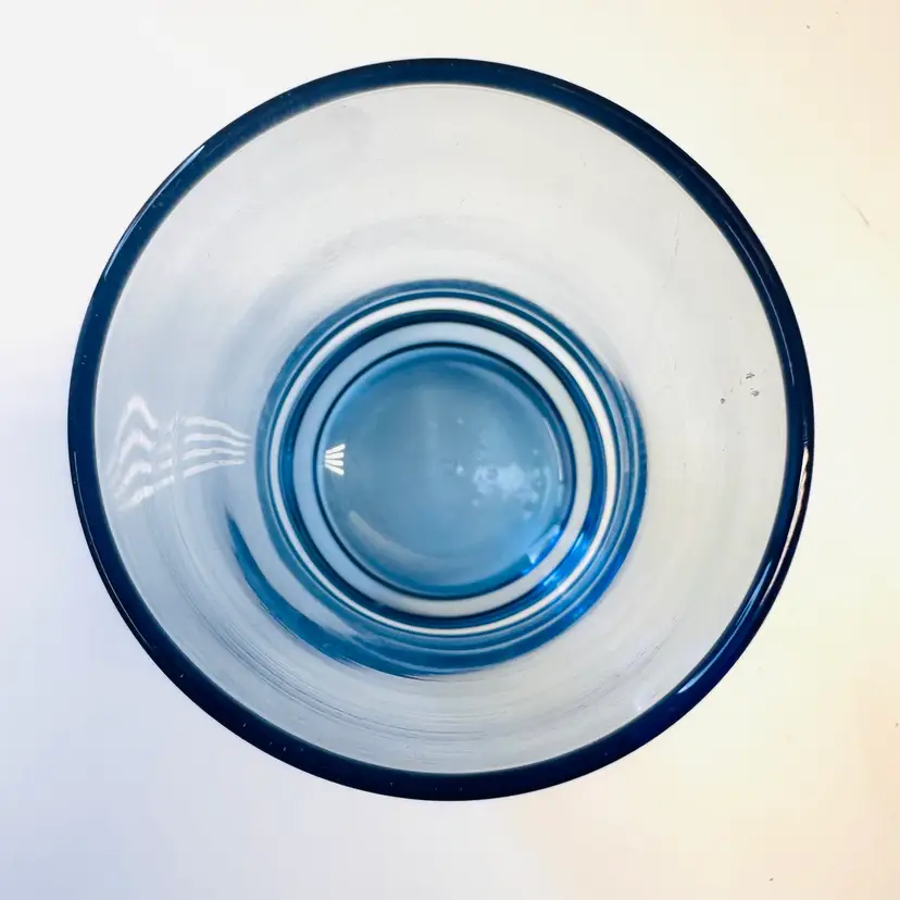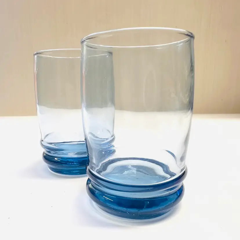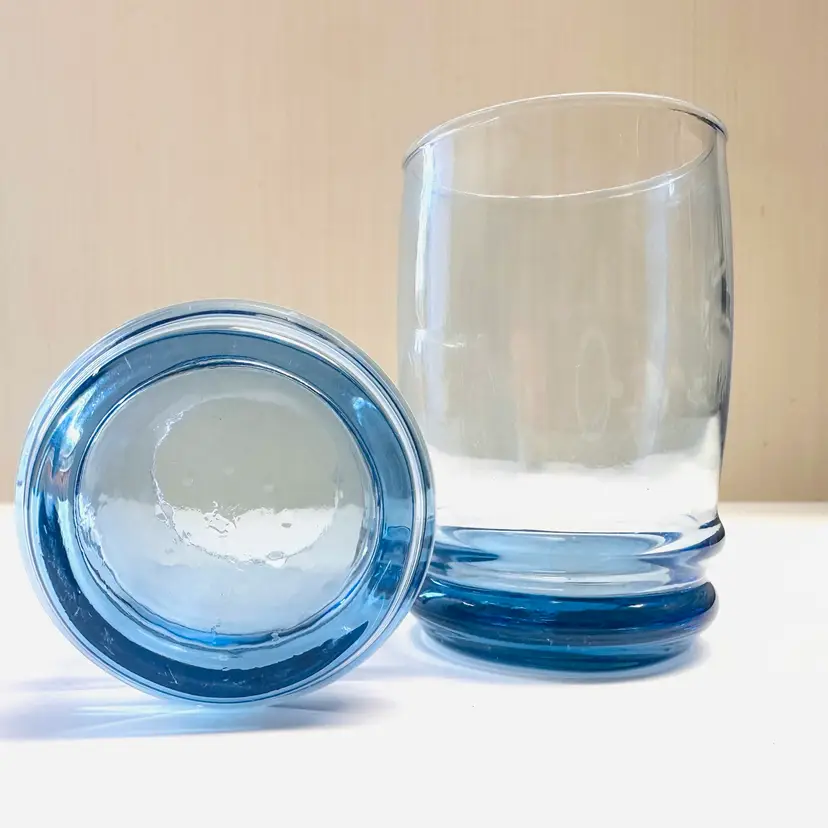 A pair of previously owned Anchor Hocking Saturn Blue in color juice cup or small drinking glass. There is a maker mark on bottom (see pictures).