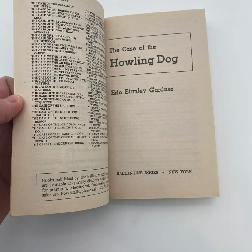You are purchasing one A Perry Mason Mystery: The Case of the Howling Dog Paperback Book by Erle Stanley Gardner and Ballentine Books from 1984. This Book is in overall great condition. Most notable sign of wear is shown in the final image. Pages have no rips, folds or writing.