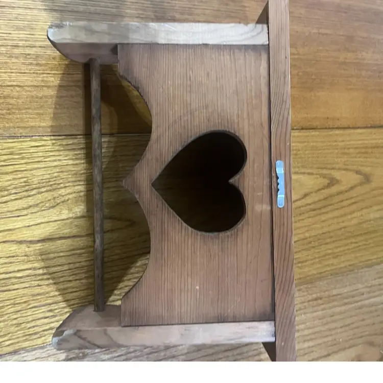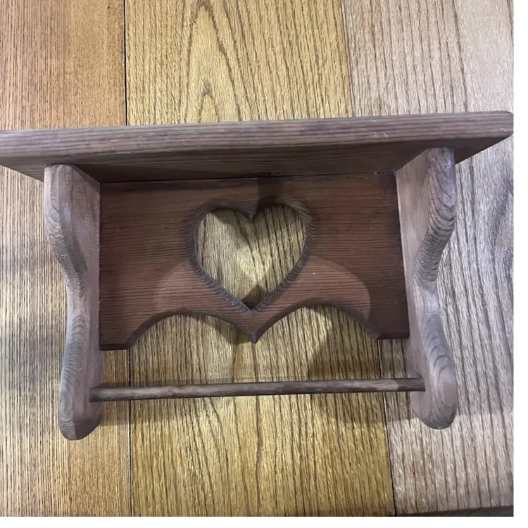 This particular shelf, with its heart motif and rustic finish, evokes a sense of country or cottage decor, popular in various periods, particularly the mid-20th century onwards. Such pieces were often handmade or produced by smaller craftspeople, intended for practical use like holding towels or small decorative items, while also serving as a charming accent.