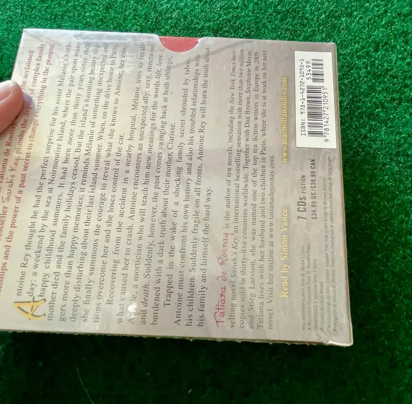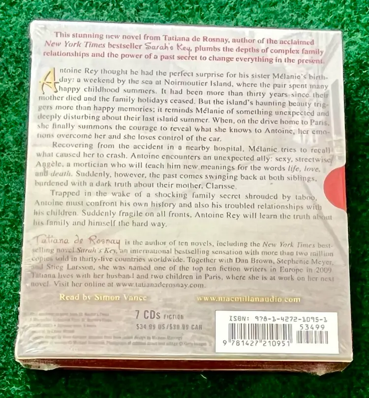 The novel on CD titled "Secret Kept: A Novel" by Tatiana de Rosnay, acclaimed New York Times bestseller and author of Sarah's Key, this historical fiction mystery story plumbs the depths of complex family relationships in France and the power of a past secret to change everything in the present with narration by professional voice actor, Simon Vance and a running time of 9 hours. Published by St. Martin's Press in 2011, the sealed compact disc format allows adult audiences to enjoy while working around the house, the garden, in a hospital bed, at the beach, lounging on the deck or patio etc.. without physically reading. With a gripping narrative and compelling storyline, this novel is sure to captivate readers with its intriguing plot and engaging characters.