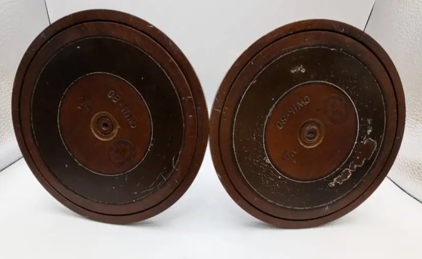 Being sold as used- they were on display in family home. There is one tiny chip on neck of one of the sticks and a scratch on the other- very small. - please see photos. There are no cracks in wood, Brass is not dented or rusted. I would say they are in wonderful condition. Non smoking home Non pet home.