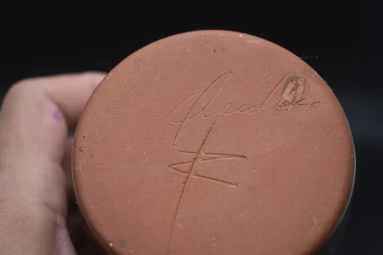 Discover this stunning handmade ceramic pottery jug from the Studio brand. With its vibrant multicolored design and exquisite terracotta material, this piece is sure to captivate attention. Signed by the talented artist, it measures 5 inches tall and showcases exceptional pottery craftsmanship. Elevate your space with this unique studio-themed jug that combines artistry and functionality seamlessly.